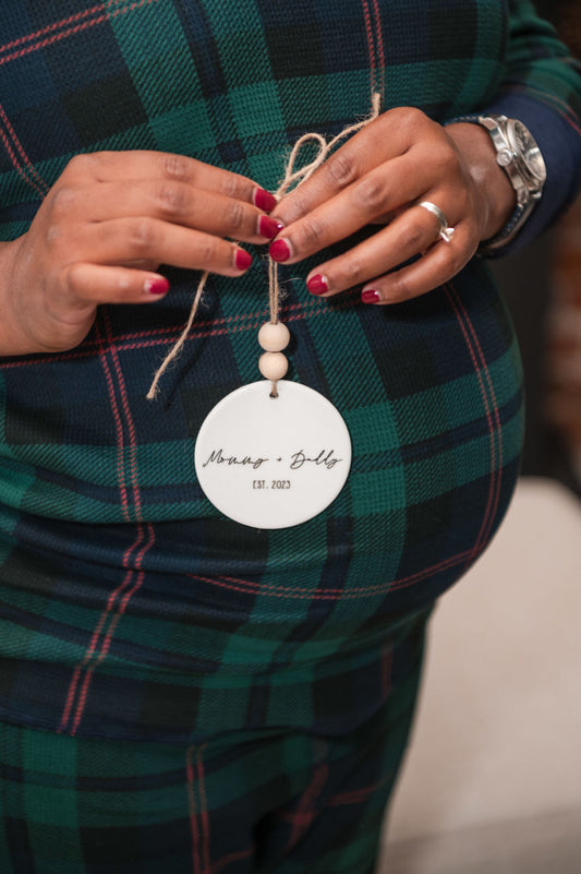 Mommy & Daddy Est. Ceramic Ornament with Wood Beads