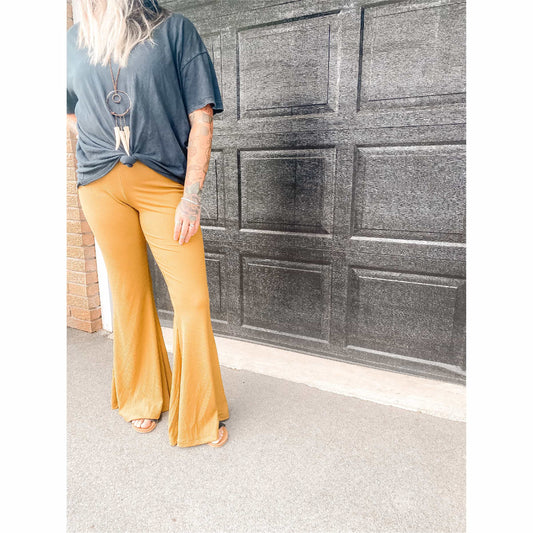 Gold Ribbed Adult Bamboo Bell Bottoms