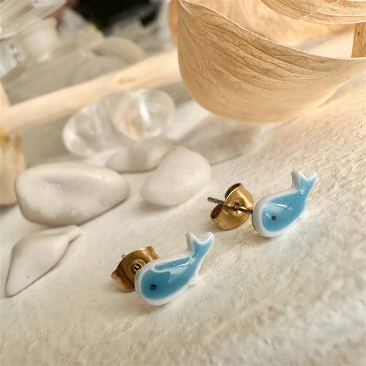 Bellis Porcelain Daisy Stud Earrings - Blue