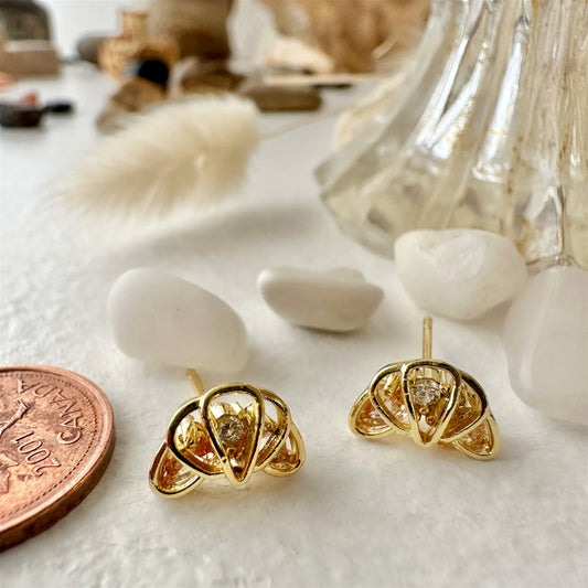 Quaso Croissant Rhinestone Stud Earrings with Sterling Silver Posts in Gold
