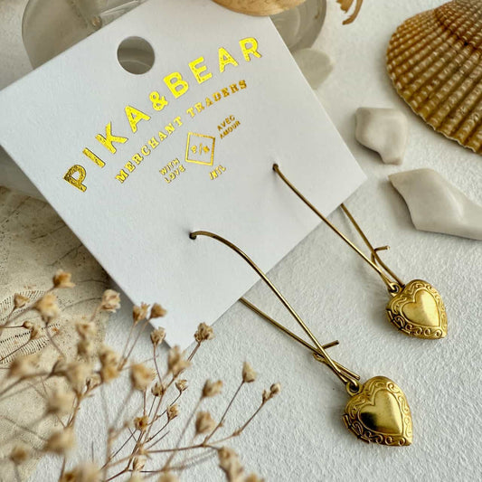 Elizabeth Vintage Heart Shaped Locket Drop Earrings in Raw Brass