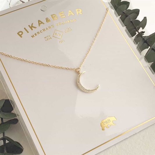 La Lune Rhinestone Moon Charm Necklace in Gold