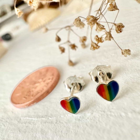 Lil Lovin Tiny Rainbow Heart Stud Earrings in Sterling Silver