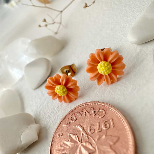 Bellis - Porcelain Daisy Stud Earrings in Orange