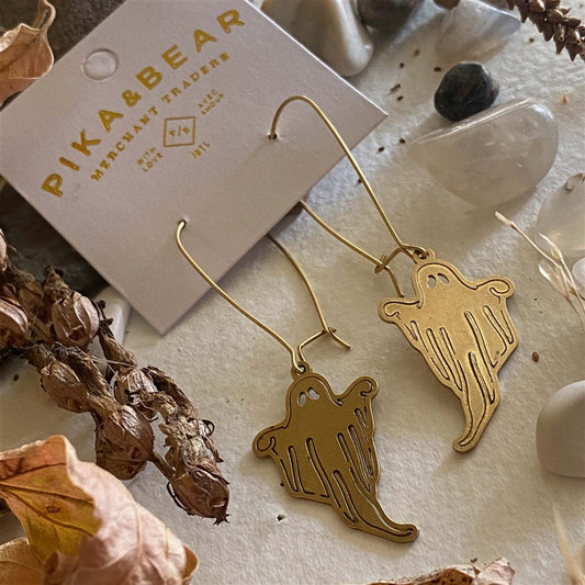 Spectre - Terrifying Ghost Kidney Wire Drop Earrings in Raw Brass