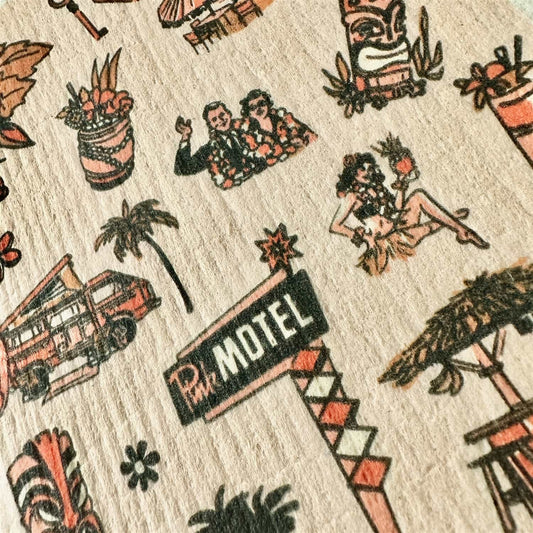 Tiki Tiki Tiki Hawaiian Design Swedish Dishcloth