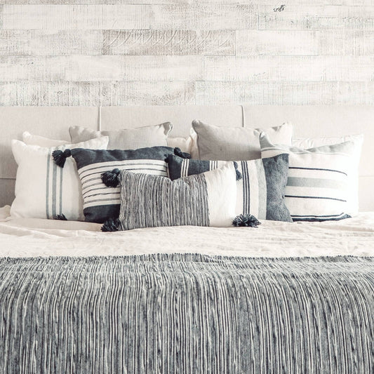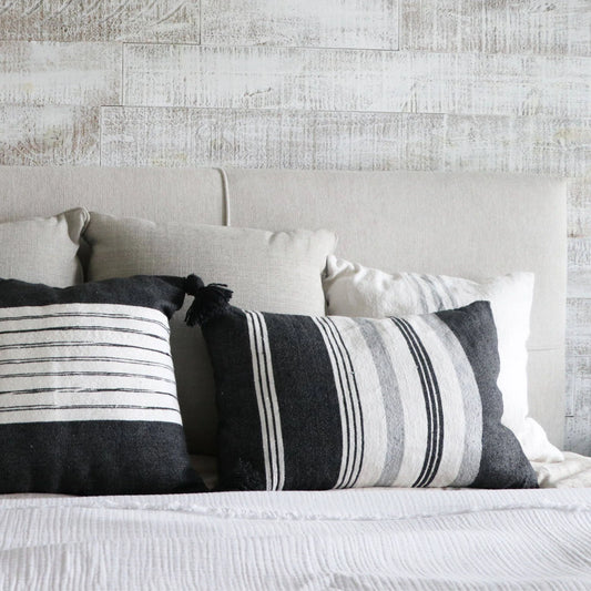 Striped + Solid Canvas Pillow with Down Feather Insert