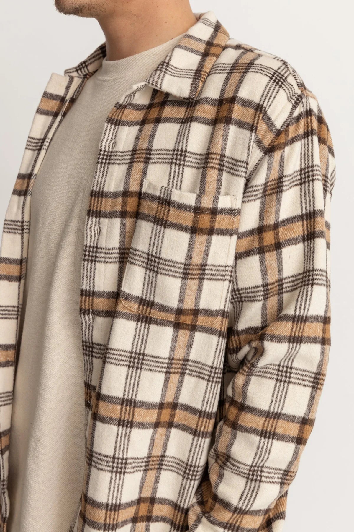 Cut in a soft brushed wool blend with a straight hem and rhythm trims, the Albert Check Ls Shirt is the most perfect throw-over piece of the season.