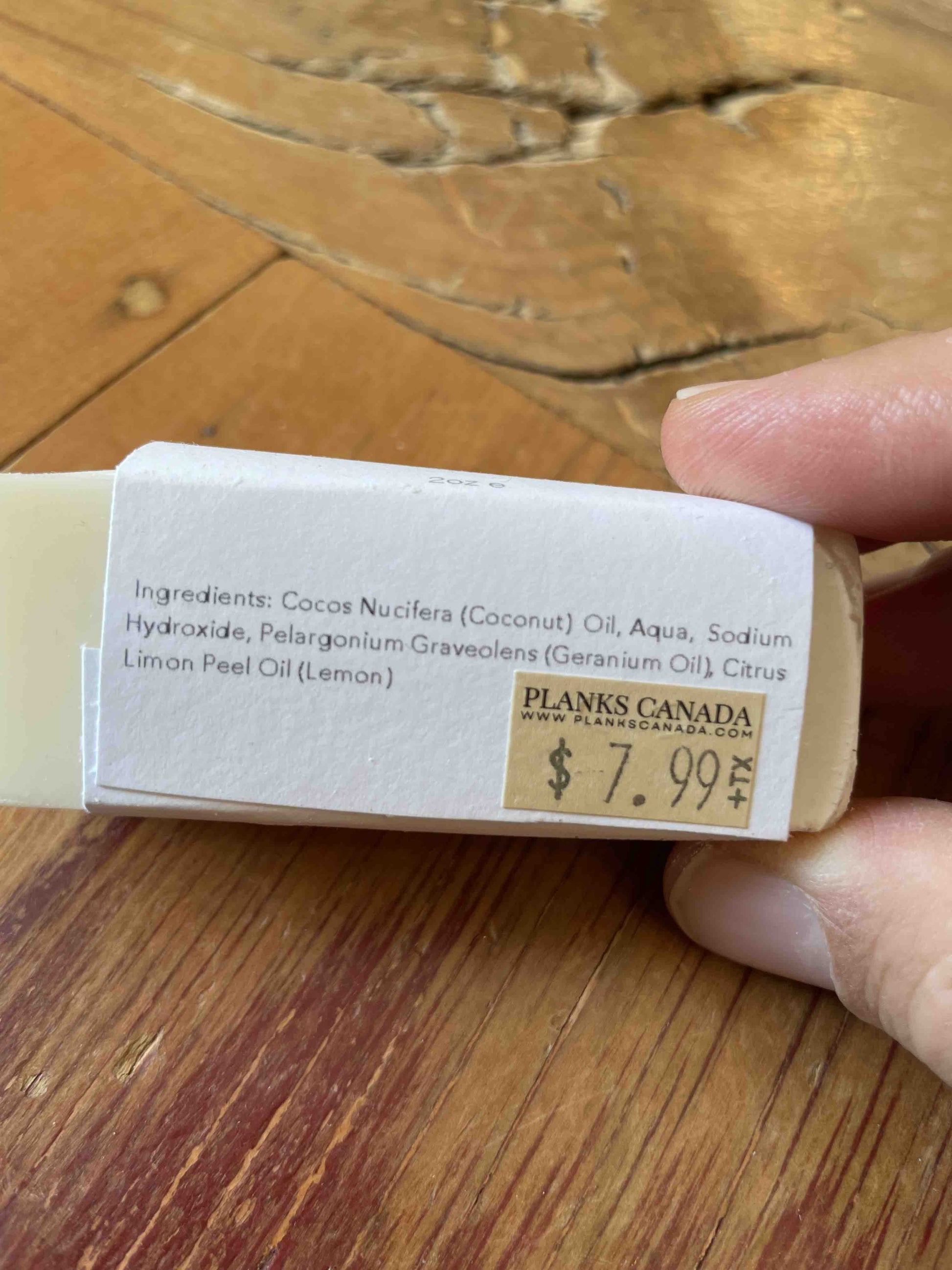 Saponified Ingredients: Coconut Oil, Water, Geranium and Lemon Essential Oils