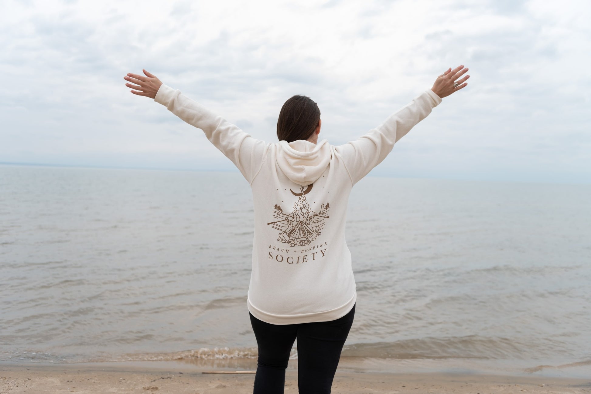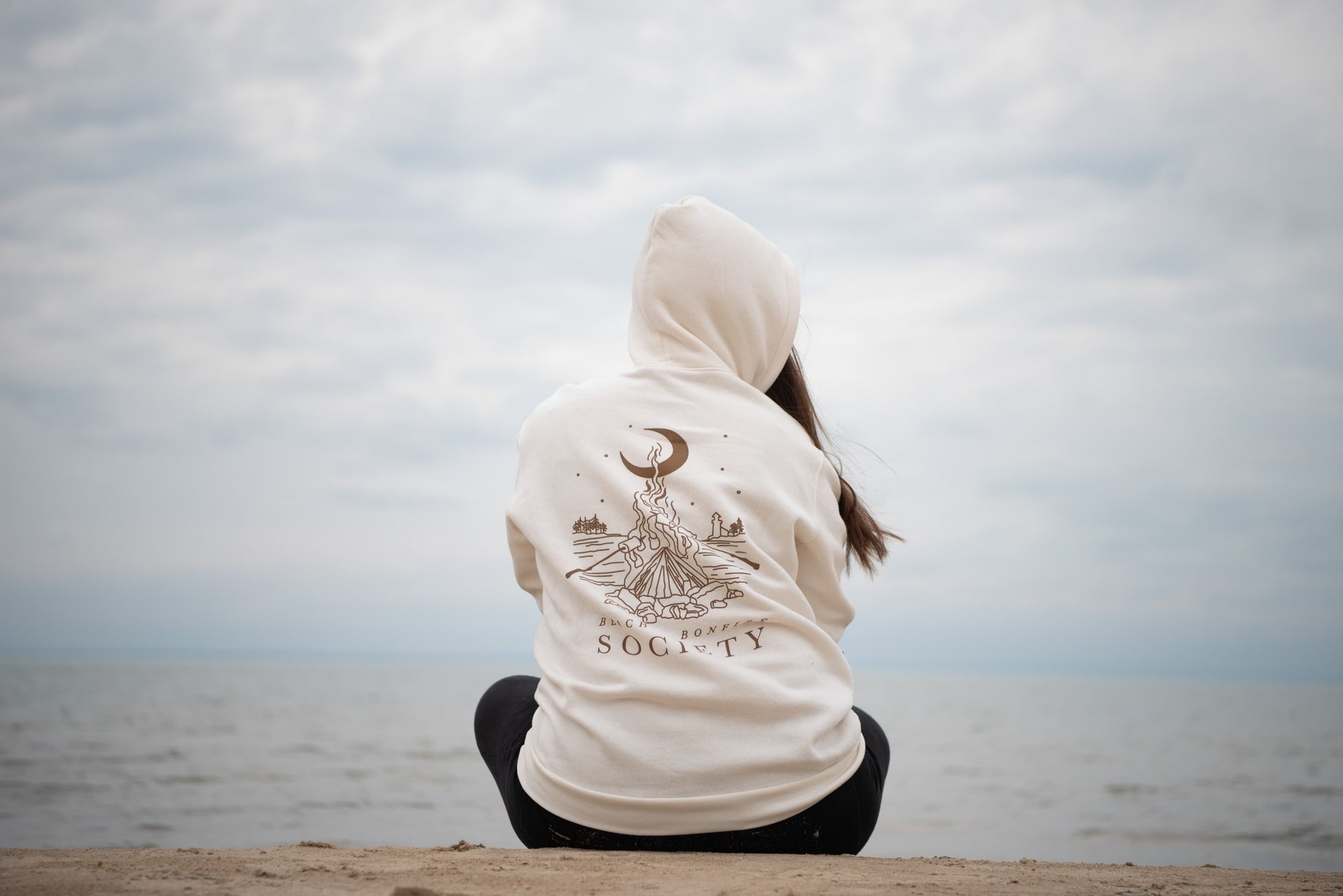 Become an official member of the Beach Bonfire Society with this hoodie! Perfect for those beach bonfire nights, or the chillier nights spent indoors dreaming of the beach. Once you slip on this cozy hoodie, you'll never want to take it off.