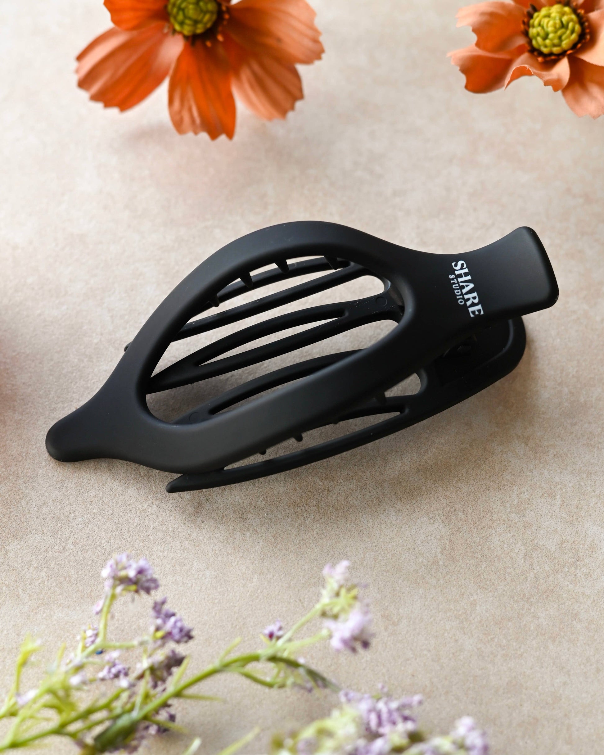 Introducing our Lay Flat Wide Clip in a new matte, ultra black color! This clip not only lays flat to your head for ultimate comfort no matter the activity, but is also built for medium to thick hair. The new matte black color is the perfect neutral hair accessory to compliment any outfit, casual or fancy!