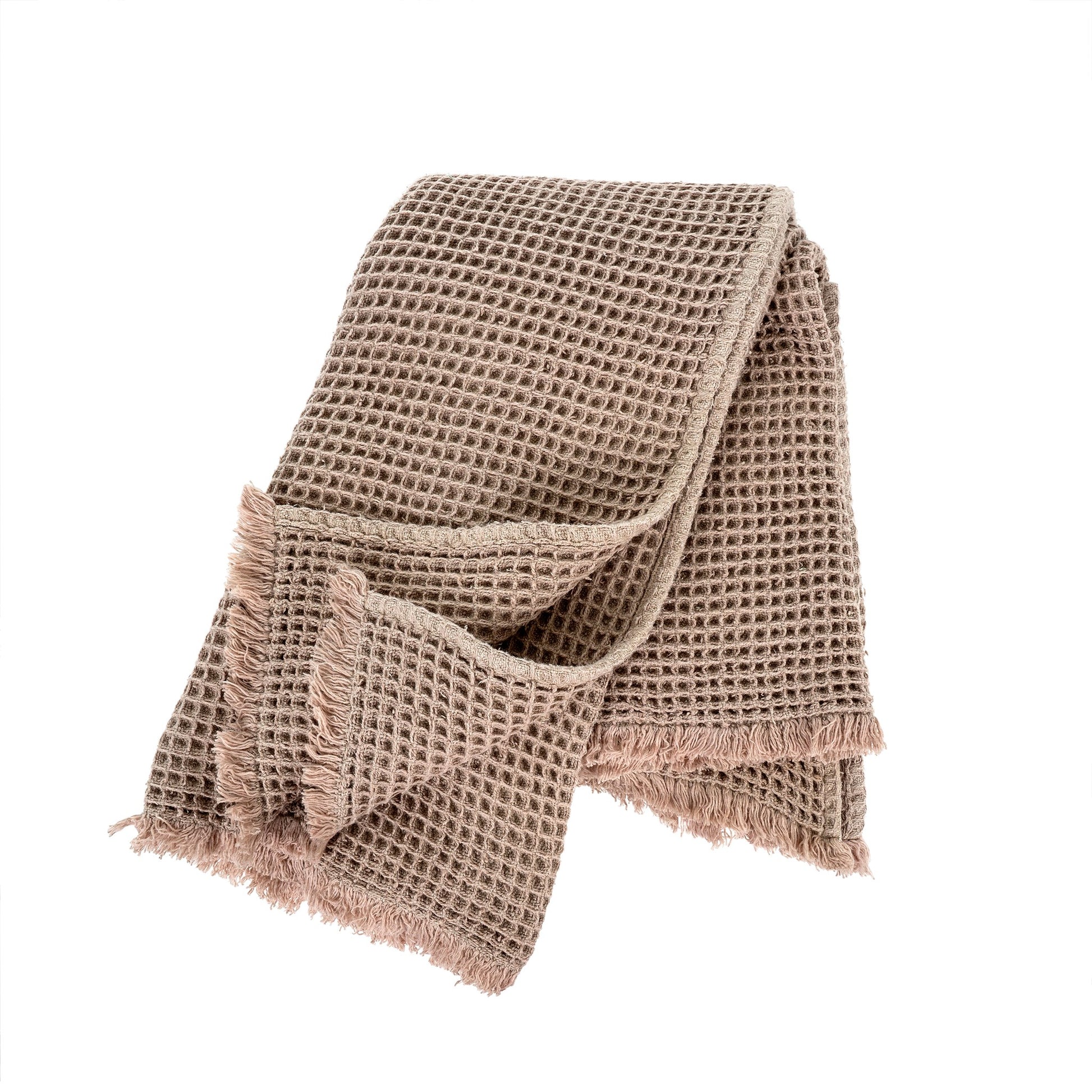 This stonewashed waffle throw is textured with a thick, dimensional waffle weave, and finished with a soft eyelash fringe.