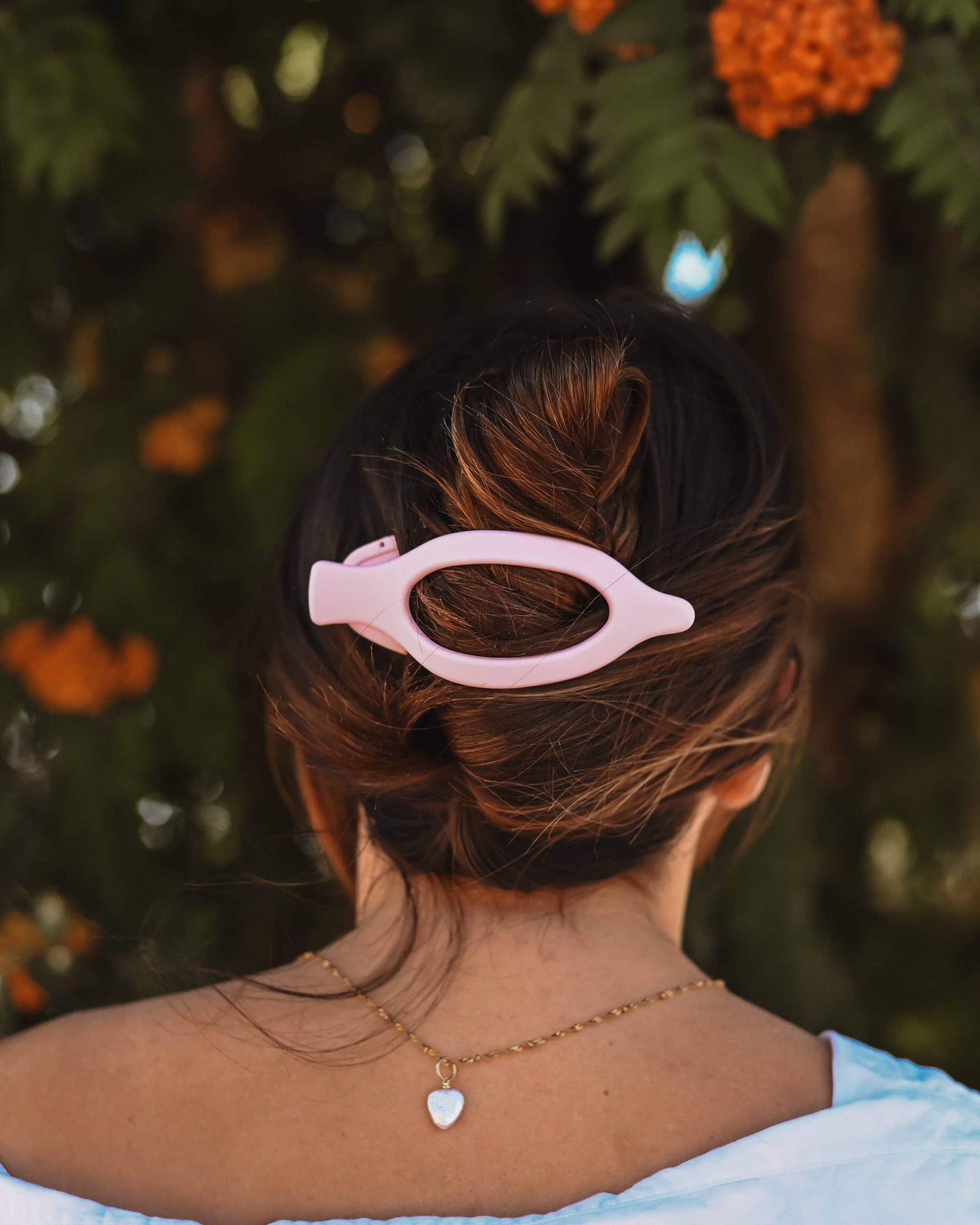 The Lay Flat Wide Clip is a fantastic clip for those seeking comfort, style and efficiency. This clip is best for driving, laying down and just overall relaxing due to its flat-laying nature. Say goodbye to your clip’s teeth digging into your head! Despite this clip’s purpose being for laying flat, the Lay Flat Wide Clip will also perform very well for day-to-day activities for the range of thin to thick hair. For those with ultra long or ultra thick hair, this clip will look and perform wonderfully with a half-up half-down hairstyle. Our Bubble Gum Pink Lay Flat Wide Clip is a brighter pastel pink with a matte finish and monochrome engraved logo on the inside.