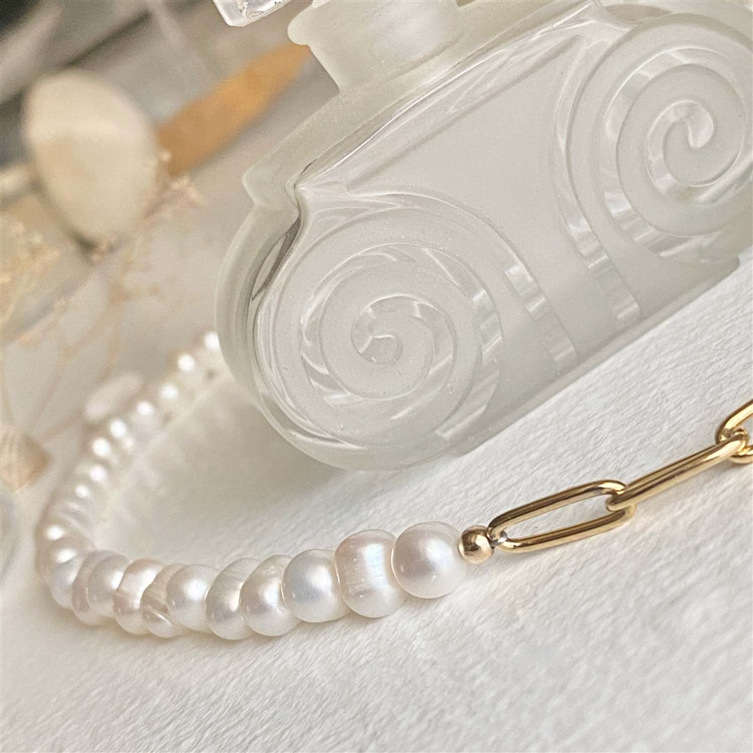 Champs Élysées Freshwater Pearl and Gold Paperclip Chain Necklace