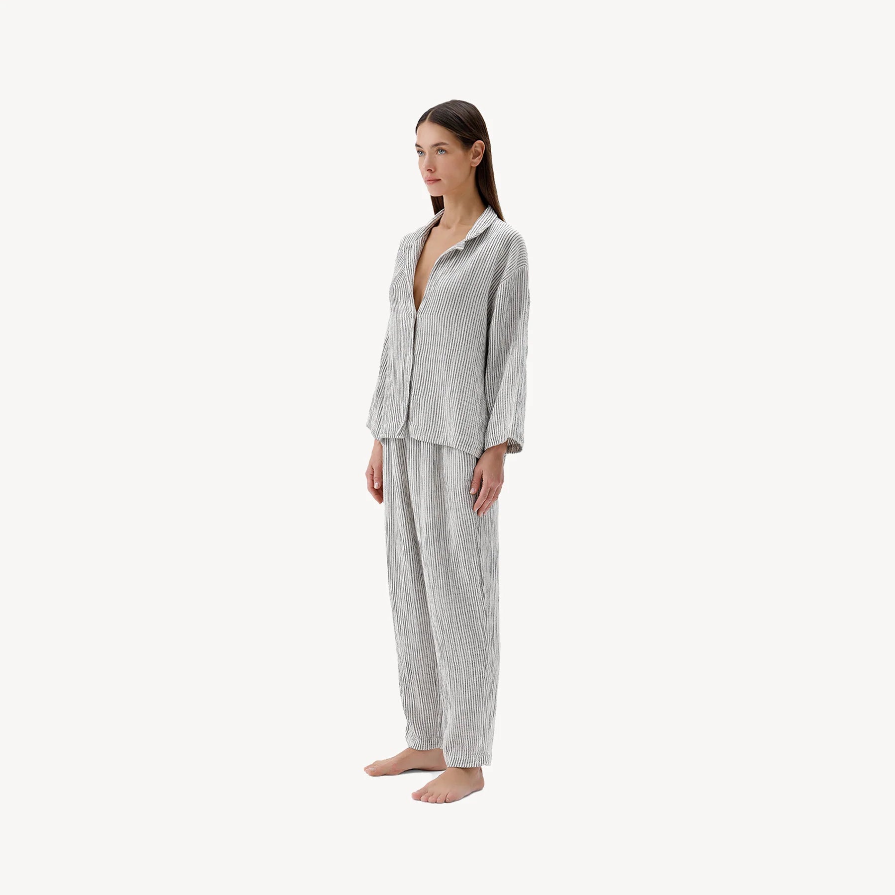 The Striped Crinkle Cotton Apparel is designed to comfortably fit most bodies sized S, M, and L, though it can be comfortable on smaller and larger bodies outside of this size range. Note that sizing may slightly vary through the sustainable garment-dyeing process.