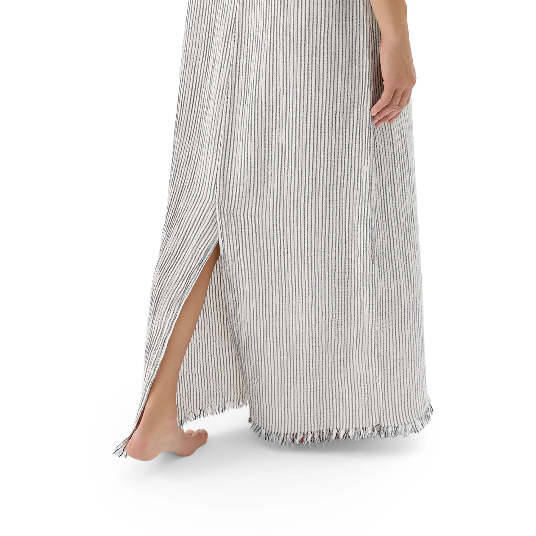 Wear the Striped Crinkle Cotton Strappy Dress from day to night with an elegant, maxi-length boho look.