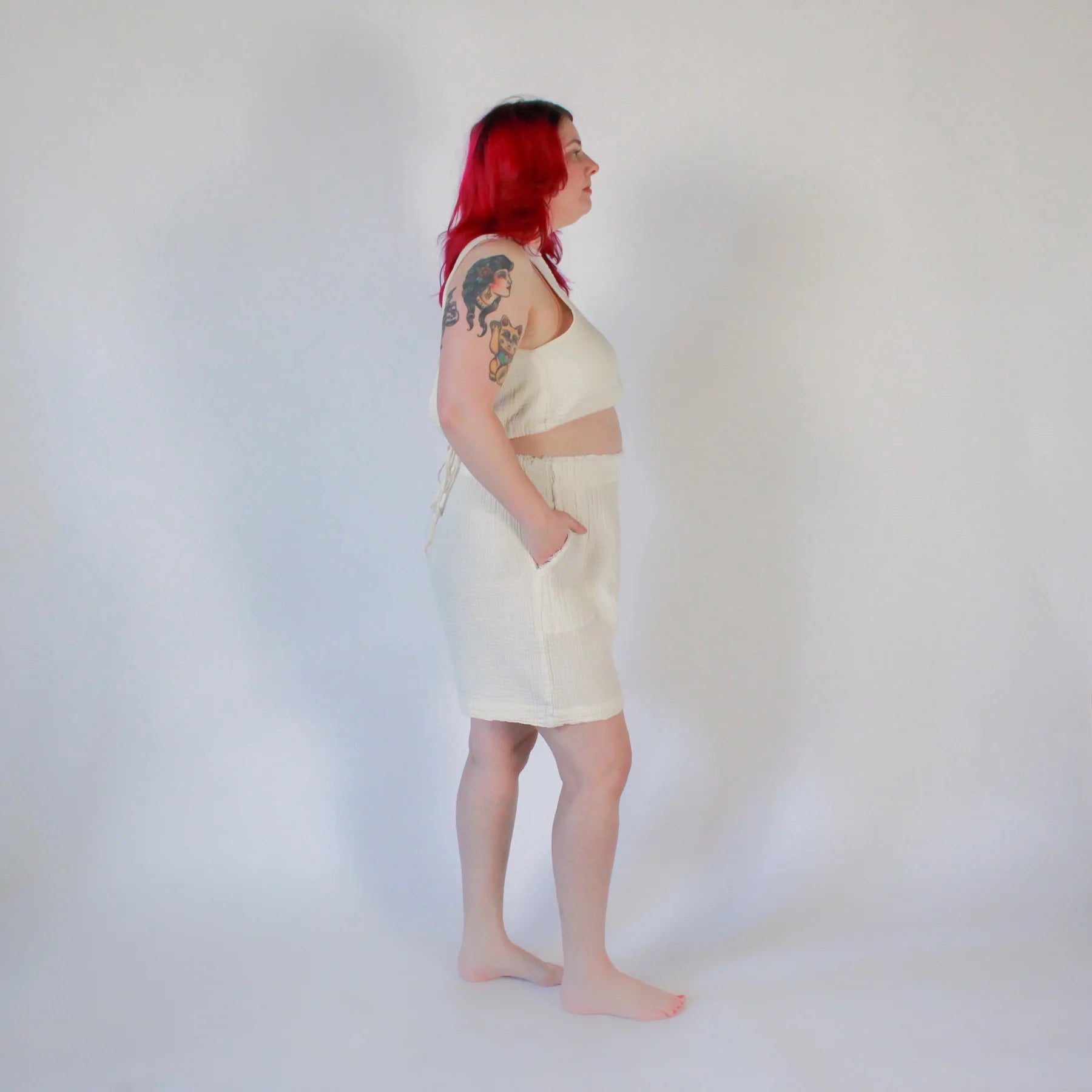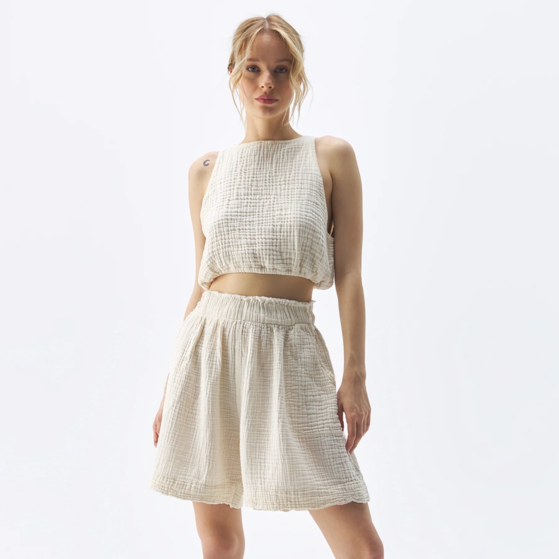With a high waist and hem just above the knee, these shorts are going to be your capsule wardrobe go-to for the warmer seasons. The special weaving technique using pure Turkish cotton yields a crinkle appearance and enhanced softness.