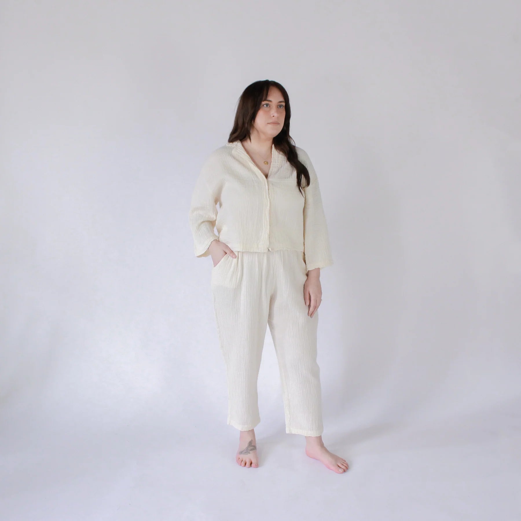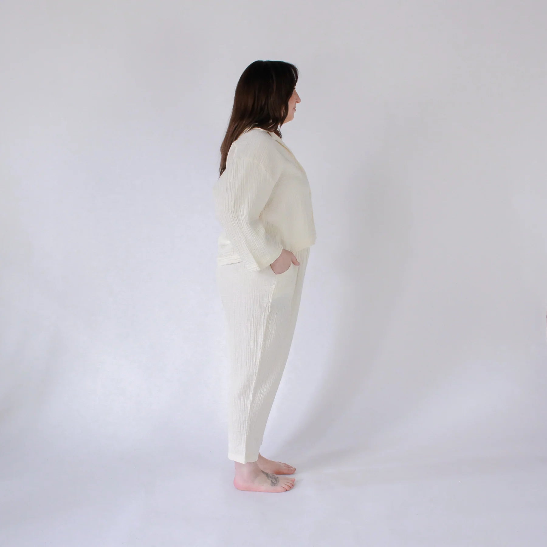 With a high waist and one size fits most, this pant is going to be your capsule wardrobe go-to for day to night. The special weaving technique using pure Turkish cotton yields a crinkle appearance and enhanced softness.