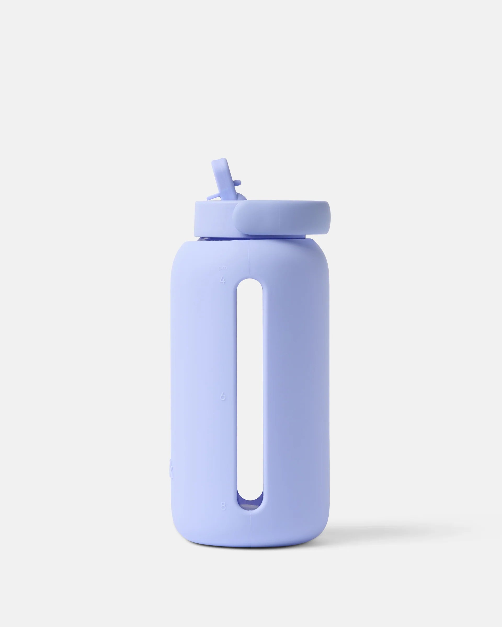 The first glass hydration tracking bottle designed to help you drink the recommended amount of water each day. Featuring simple-to-follow am/pm markings to guide you.