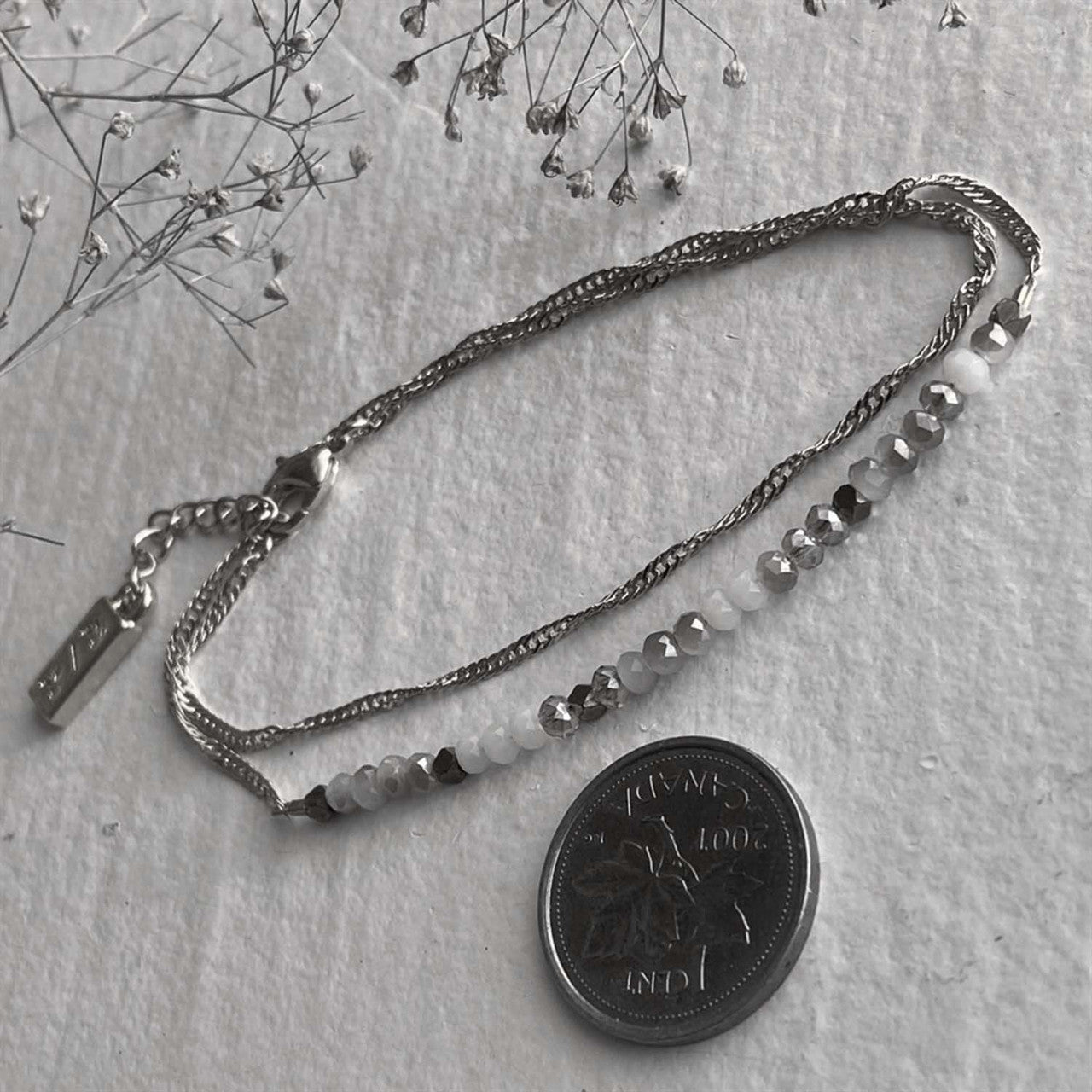 This beautifully hand beaded wrap anklet is the perfect addition to your favourite summertime boho look. The DNA chain catches the sunlight and the centerpiece of glass beads shimmer iridescently. This style is available in four different colour palettes.