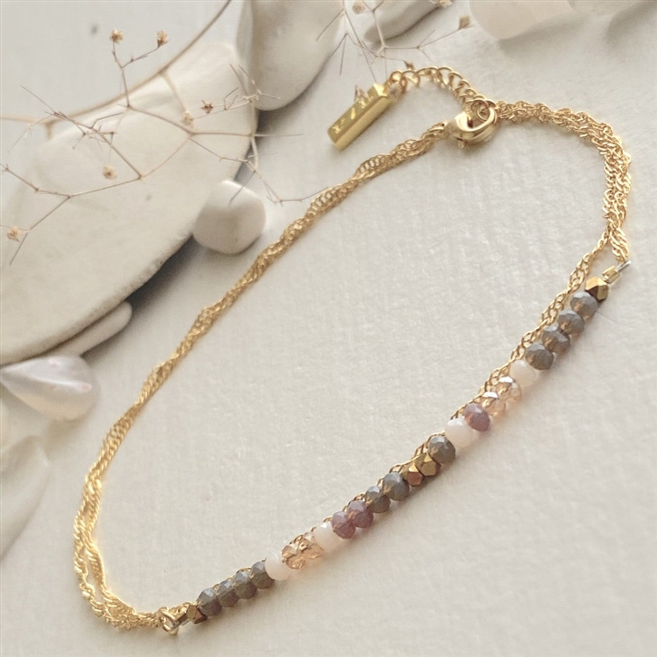 Diamond Dog Beaded Double Wrap Anklet - Storm