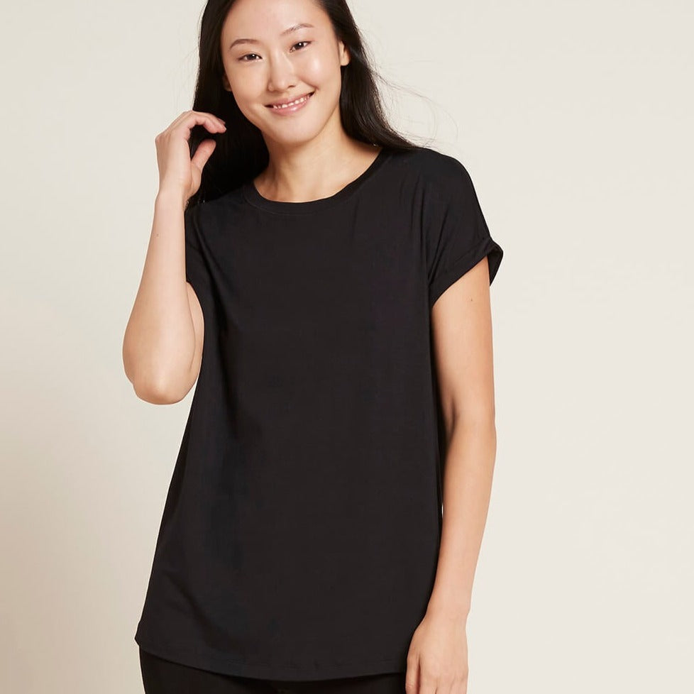 Loose tees like this are perfect for lazy days and nights at home. With a flattering center back seam detail, curved high-to-low hem and easily removed care label, this simple and stretchy lounge top does all you need. Complete with a relaxed fit and a wide neck opening that makes it easy to sleep, this lounge top will team effortlessly with our Downtime Lounge Pants. Lounge clothes have never been so comfy.