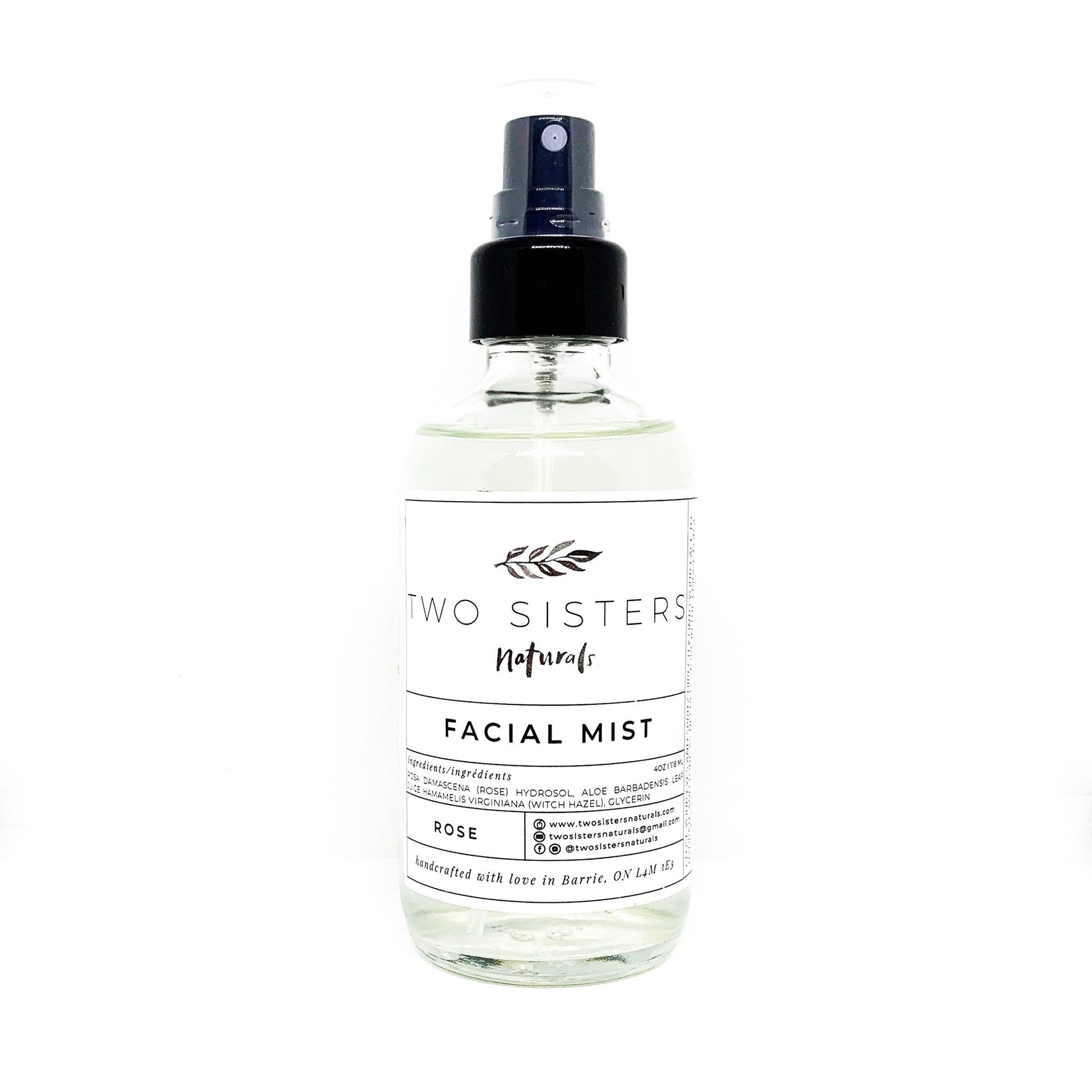 Soothe, hydrate, and tone your skin with a simple spritz of our facial mist. Enriched with soothing and moisturizing aloe and witch hazel, this gentle mist is the perfect addition to your skincare routine. The ingredients in Two Sisters facial mist not only adds moisture but also helps your skin absorb other oils (like our hydrating serum) into your skin. For best results, apply twice daily before your hydrating serum.