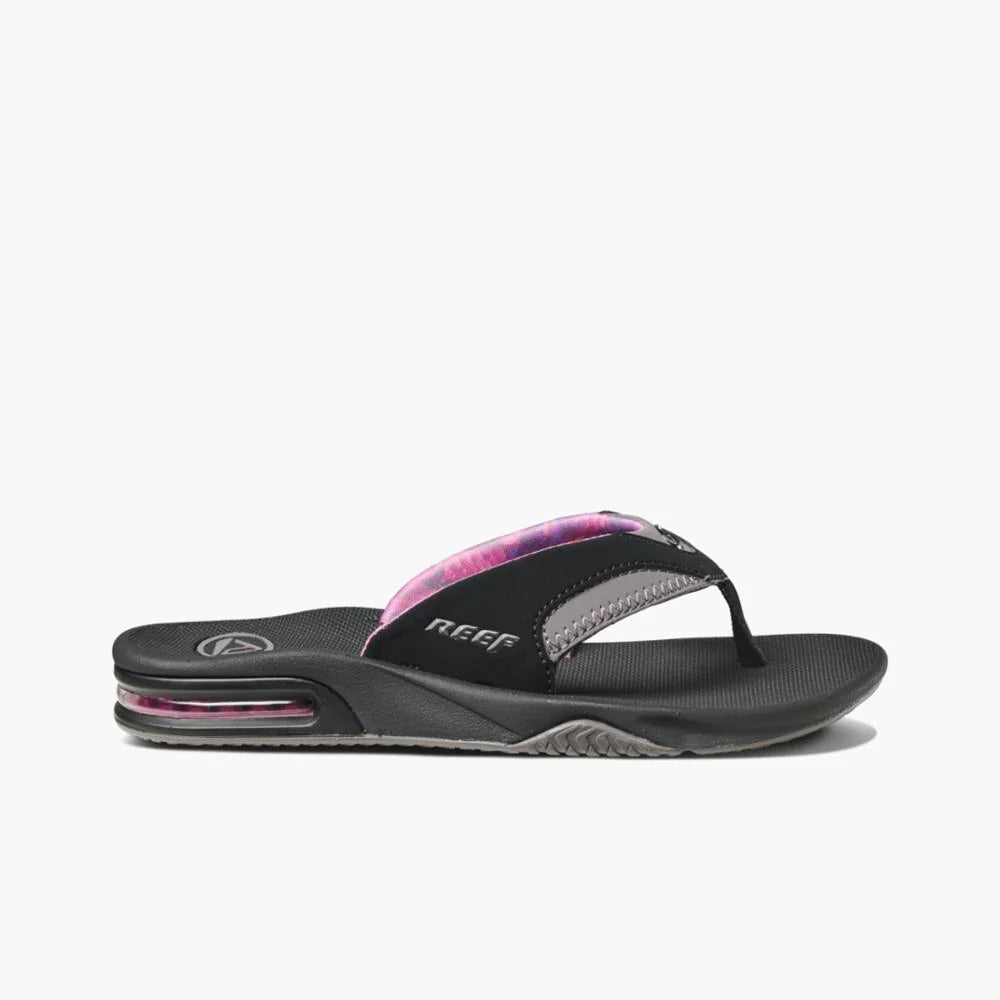 The sandal of a champ, designed specifically for a woman's active lifestyle. Inspired by legendary three-time world champ and perennial pro surfing powerhouse, Mick Fanning, this is the ultimate athletic sandal of comfortable water-friendly synthetic nubuck upper. Mick relies on the contoured injection molded Eva footbed with anatomical arch support and full 360-degree heel airbag enclosed in soft poly for good reason. And in the fun department, it also features a churchkey built into the footbed to open your soda after a surf or hanging at the pool. Reef Icon Herringbone rubber outsole.