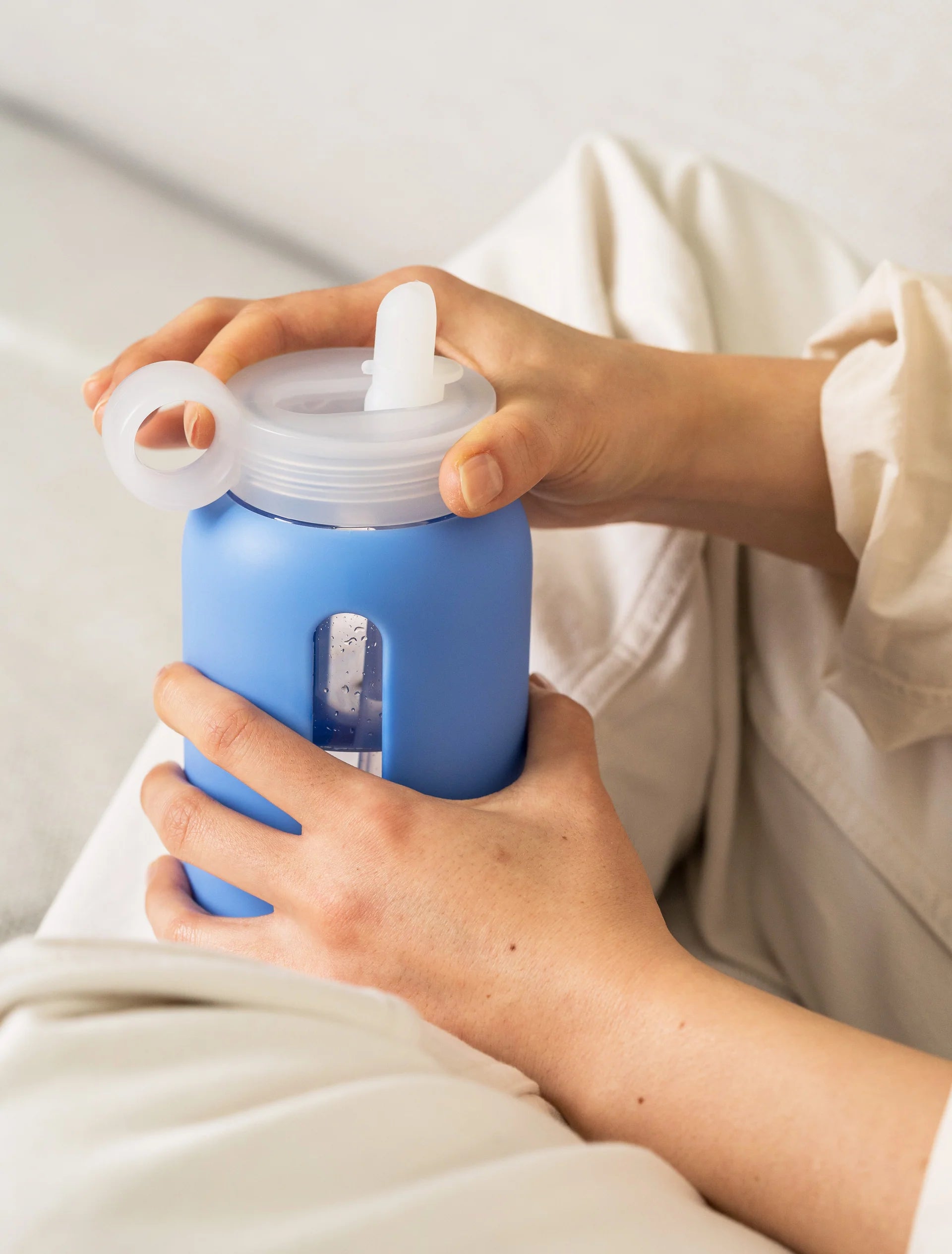 A quick-sip leak proof straw cap for on-the-go drinking.