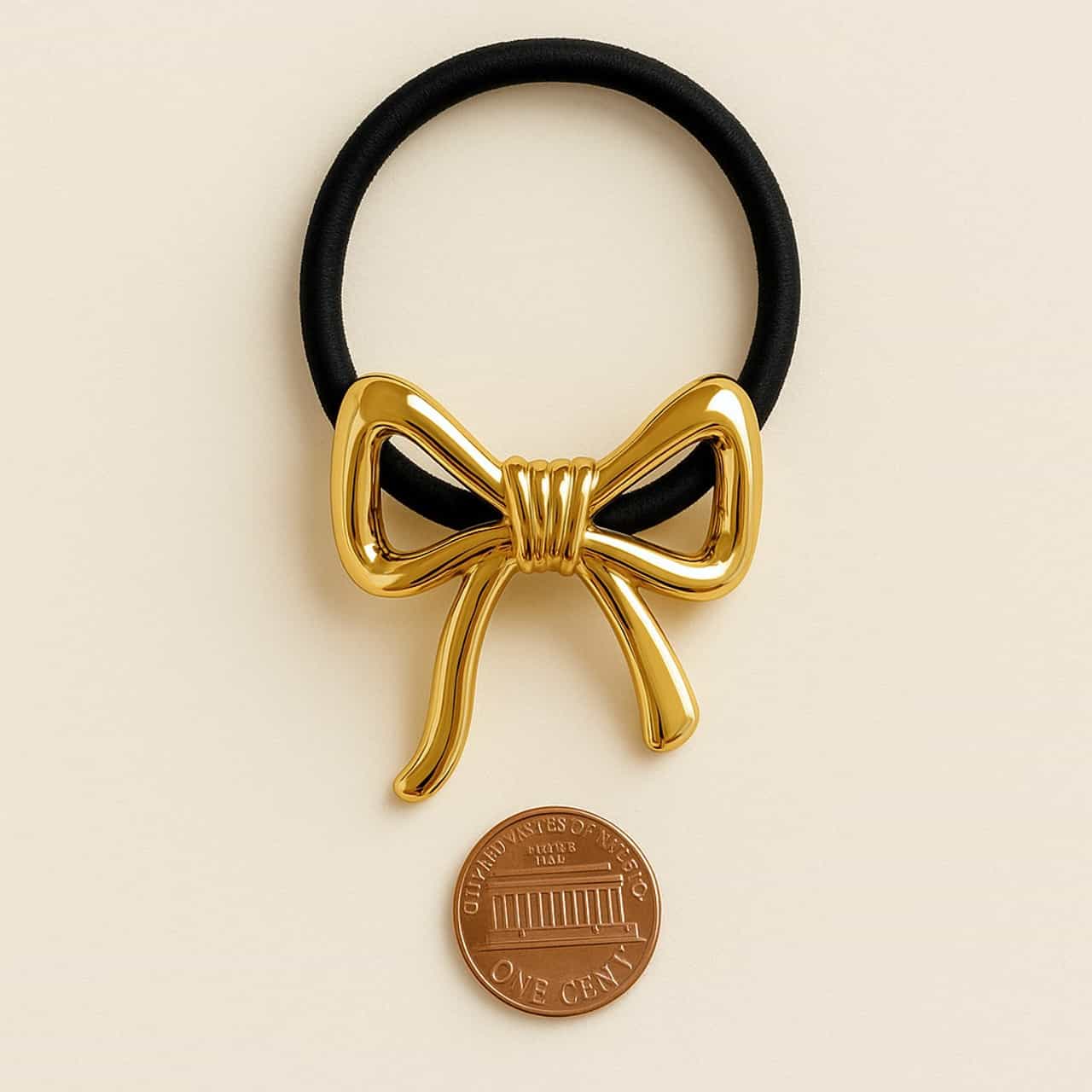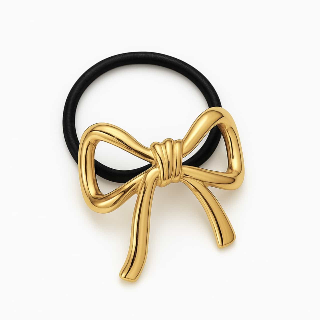 A perfectly placed bow is always a good choice. This hair accessory is the perfect blend of feminine shape and bold industrial material.