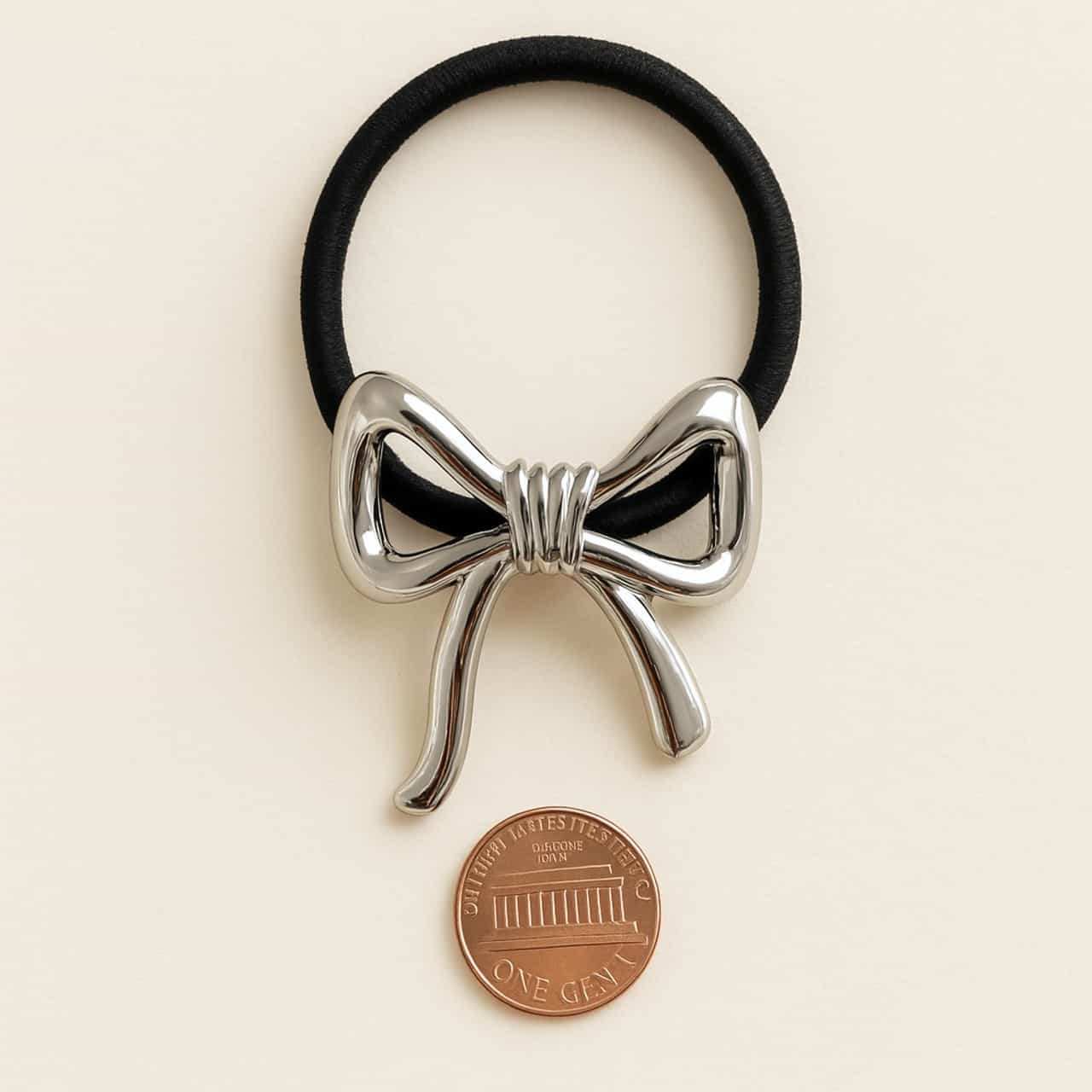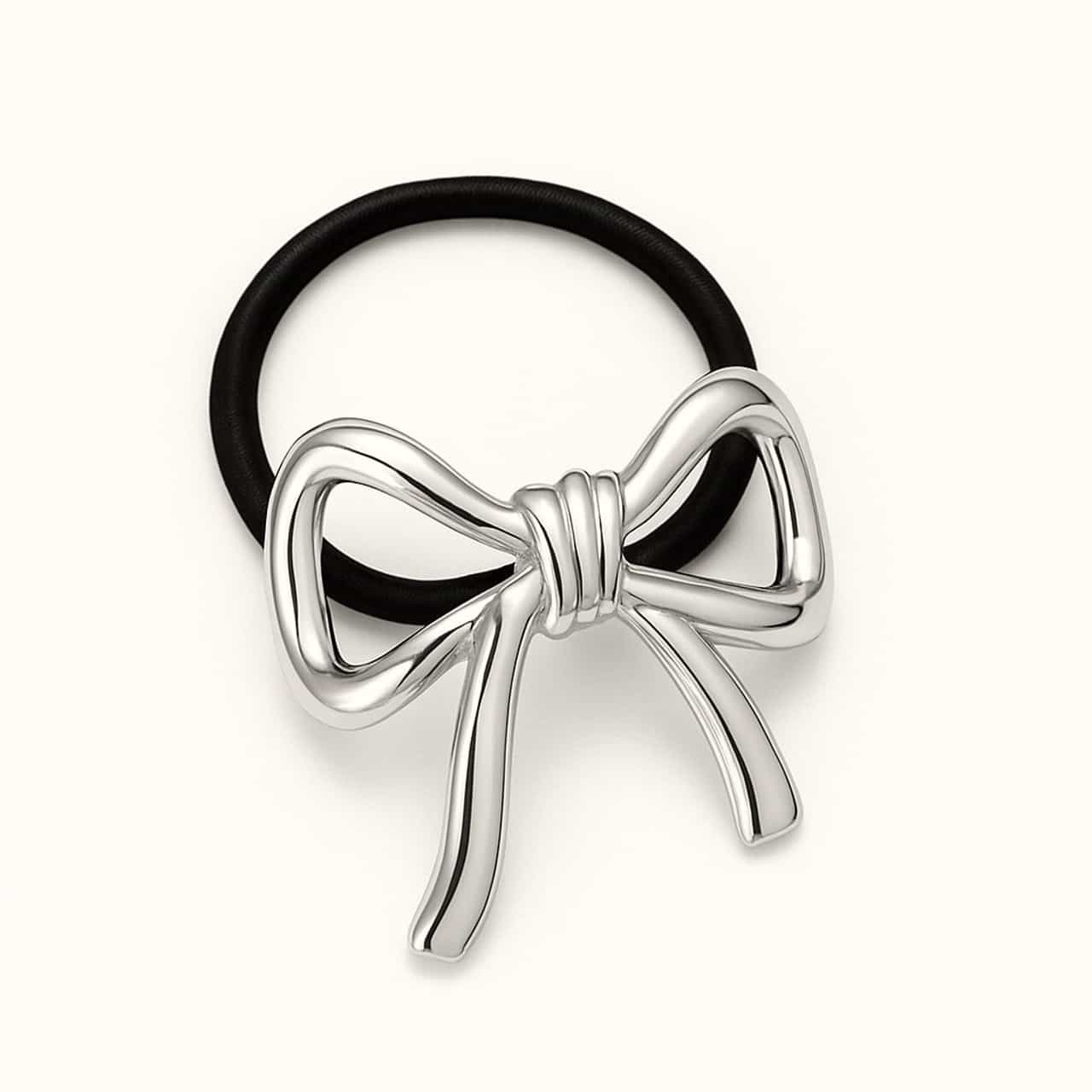A perfectly placed bow is always a good choice. This hair accessory is the perfect blend of feminine shape and bold industrial material.