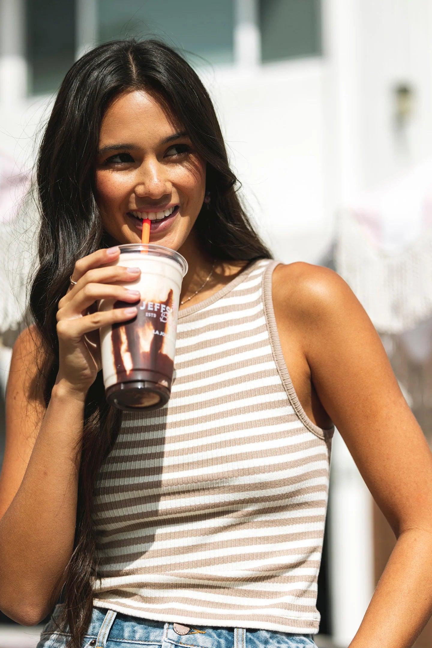 Your go-to for warm weather, this knit tank features a classic yarn dye stripe design, rib texture fabric feel and skimmer length fit.
