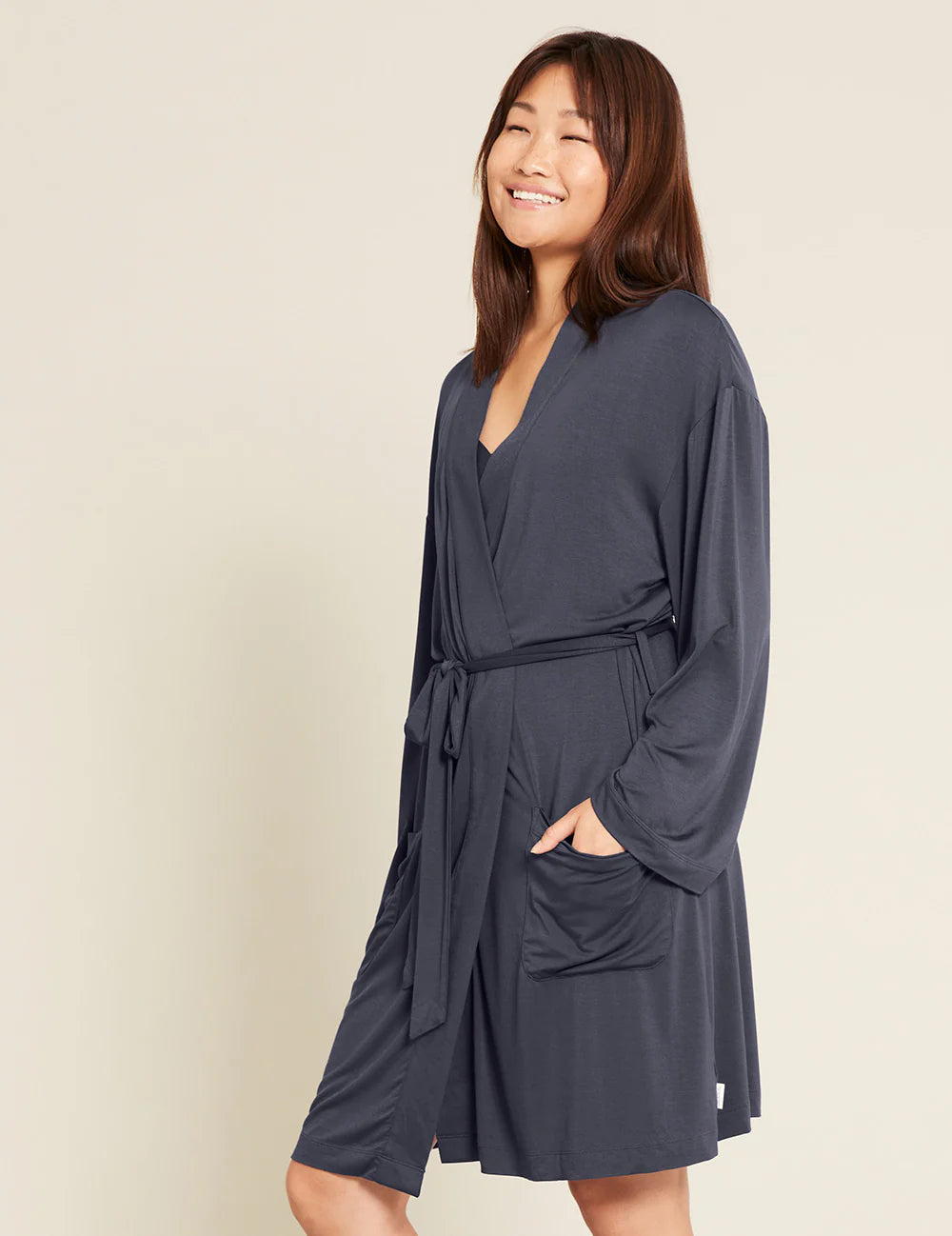 Enhance your nighttime routine with our Goodnight Robe in Pink, designed for a comfortable and relaxed fit. Featuring a wrap-style design with a tie closure, this robe boasts long sleeves for ultimate comfort and practicality. With two front pockets for added convenience, this lightweight and soft robe is the perfect addition to your sleepwear collection, perfect for in-between seasons.