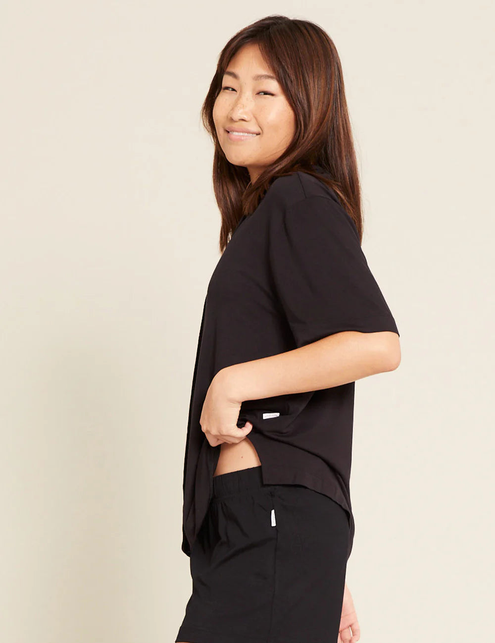 - Short sleeves for a breezy feel.