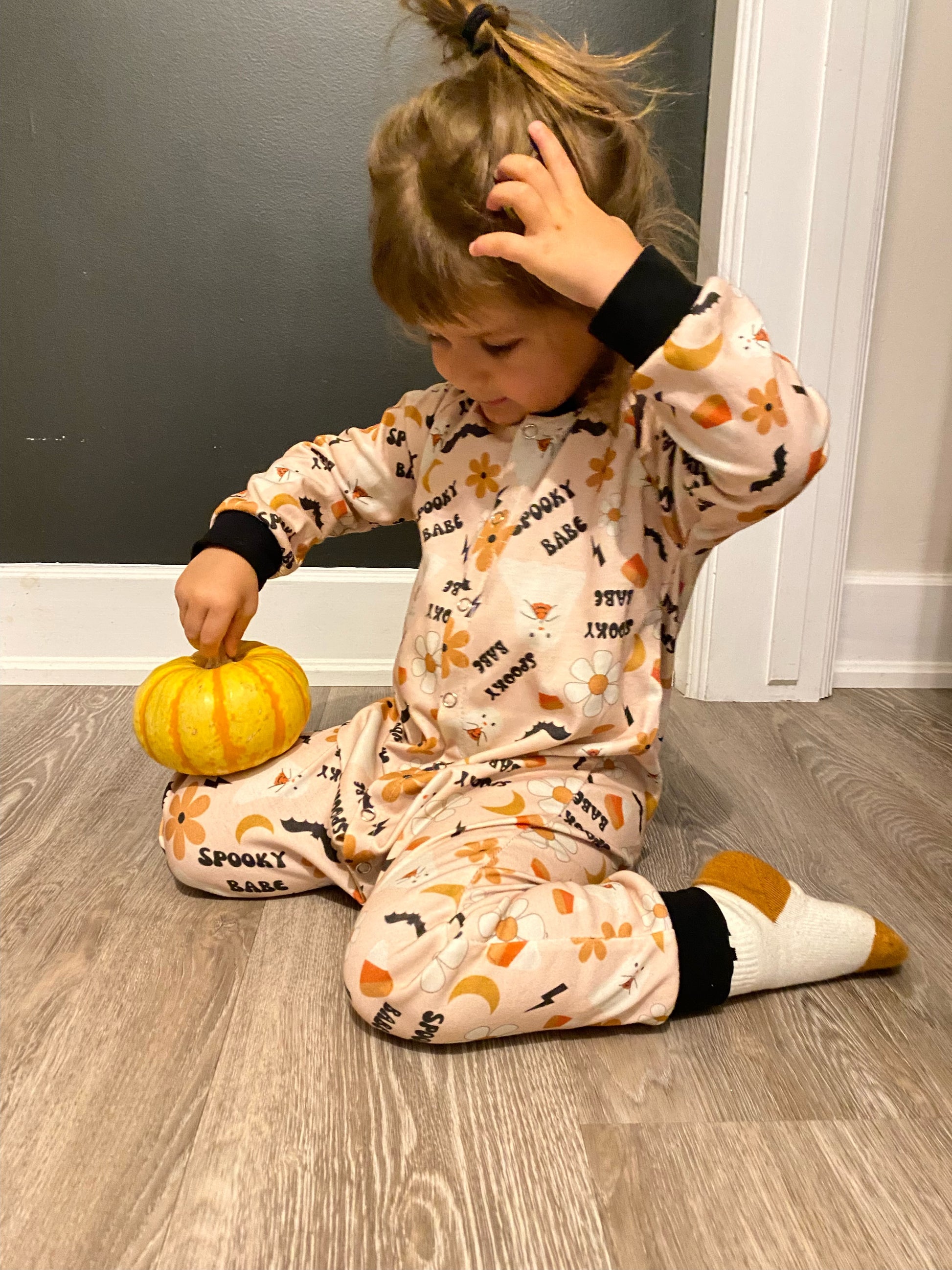 Let your little one tell you how comfy they are in this onesie. If they cannot talk they will say it in their smiles. :) Send your little ones on a cozy adventure. Happy Halloween !