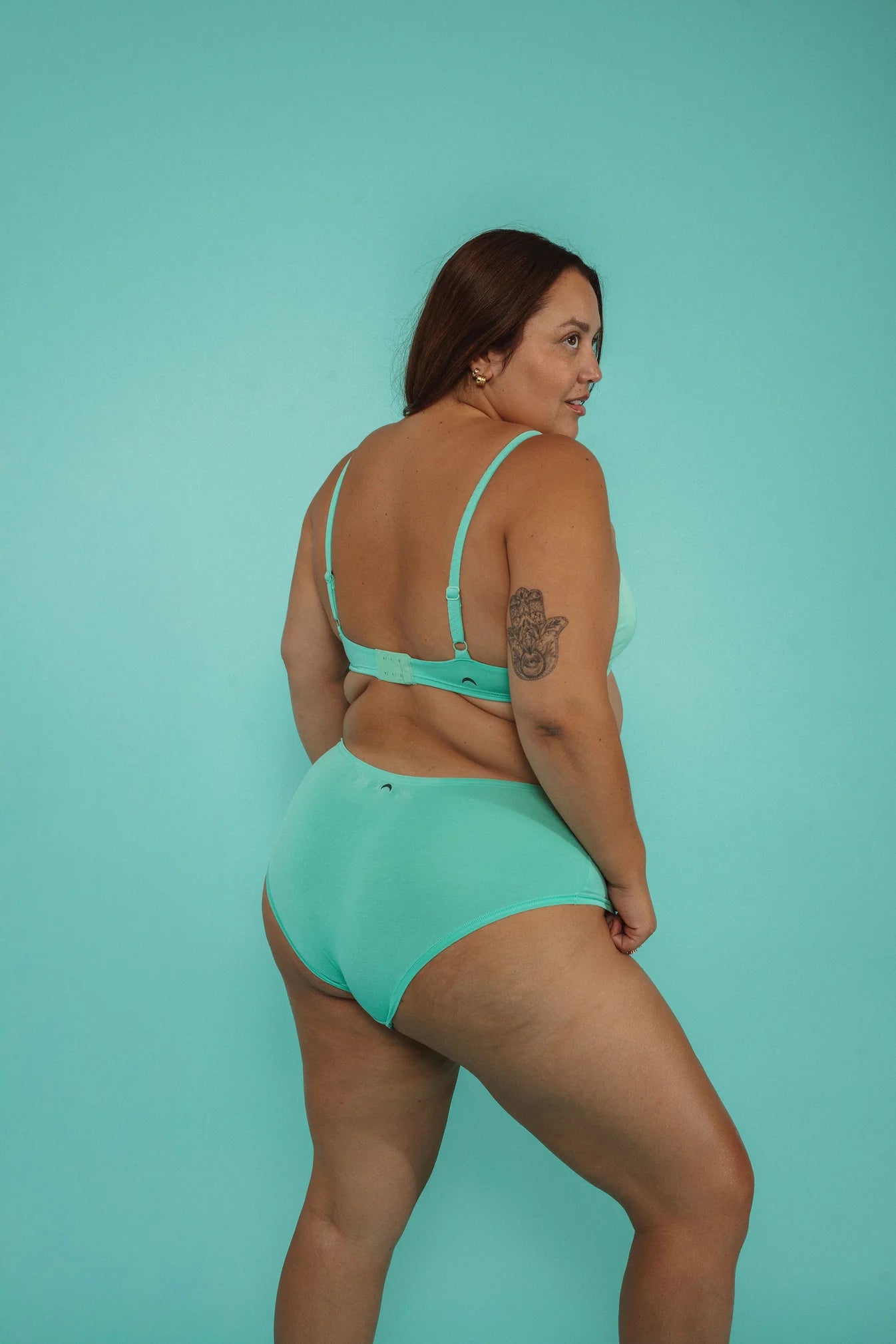 The Hipster is Huha's take on the boyshort with a deep side and slightly cheeky bum. The lightweight single-layer design mirrors Huha's fan-favorite Bikini with a merrow stitch and the perfect amount of stretch. The low-mid rise waist has a subtle curve that dips below your belly—perfect for avoiding extra pressure or stimulation around the abdomen.