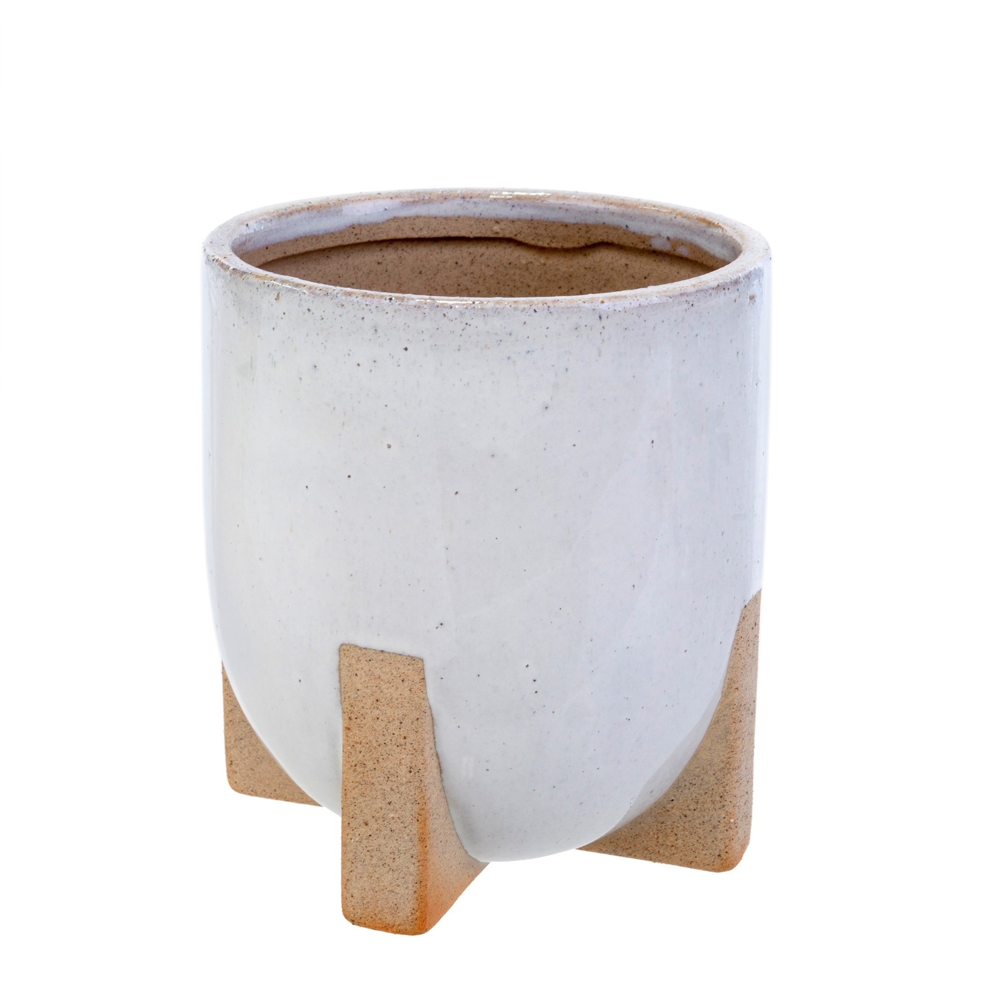 Crafted from durable stoneware, the Large Mod Pot is 5" x 5" x 5.75" and perfect for any plant or decor. Its sturdy construction and neutral design make it a versatile addition to any home.