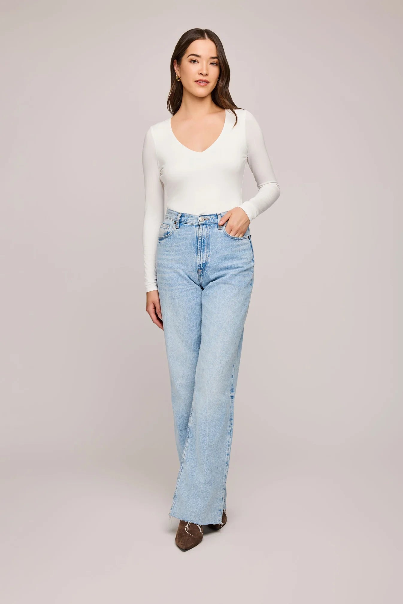 The Linette top is made of super soft EcoVero rayon jersey and is lined in the front body for ease of wear. Features include a v-neckline and perfectly tuckable length.