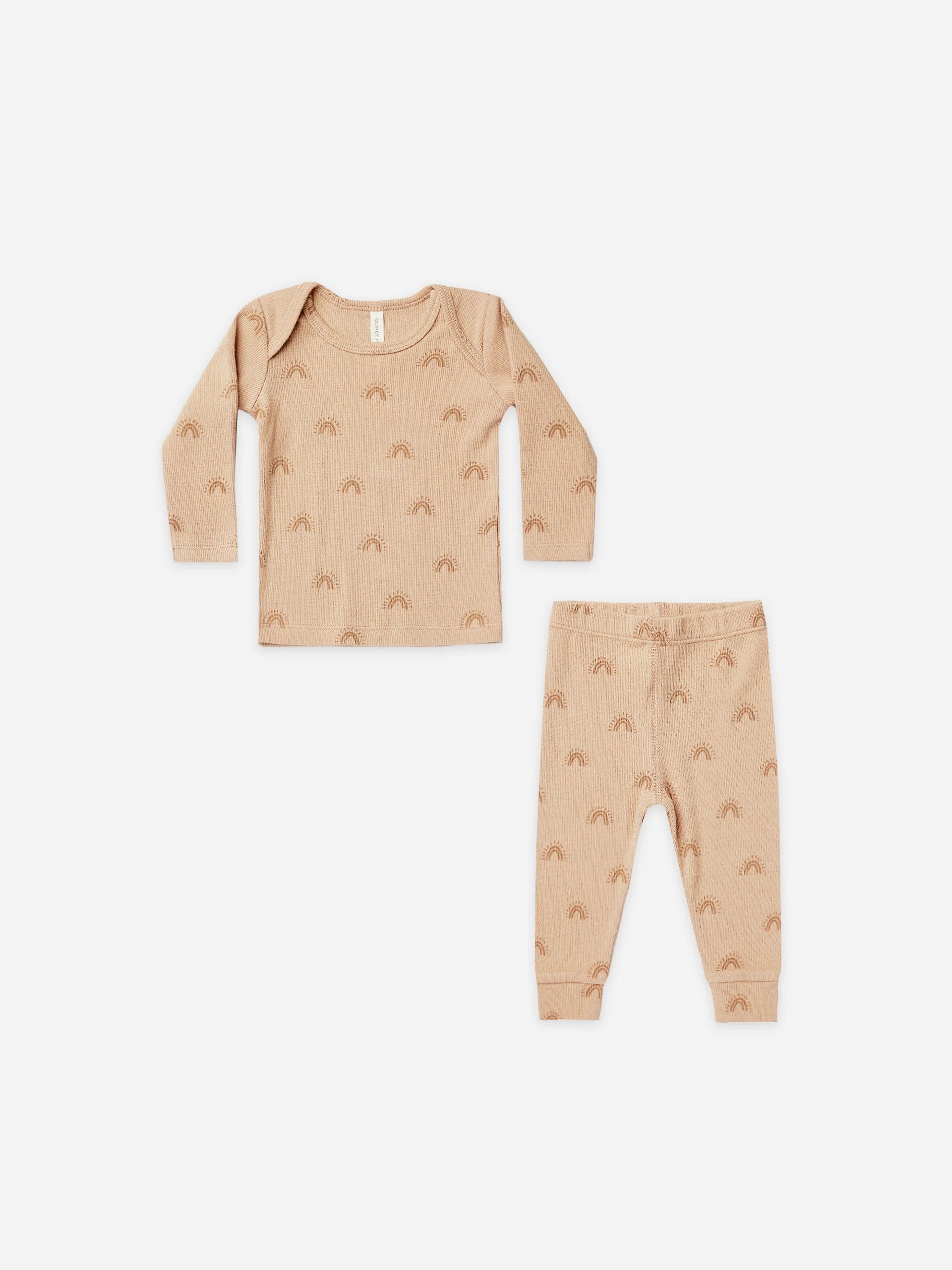 Long sleeve lap tee and our leggings in our stretchy rib knit. Slim fit with added stretch to grow with your baby.