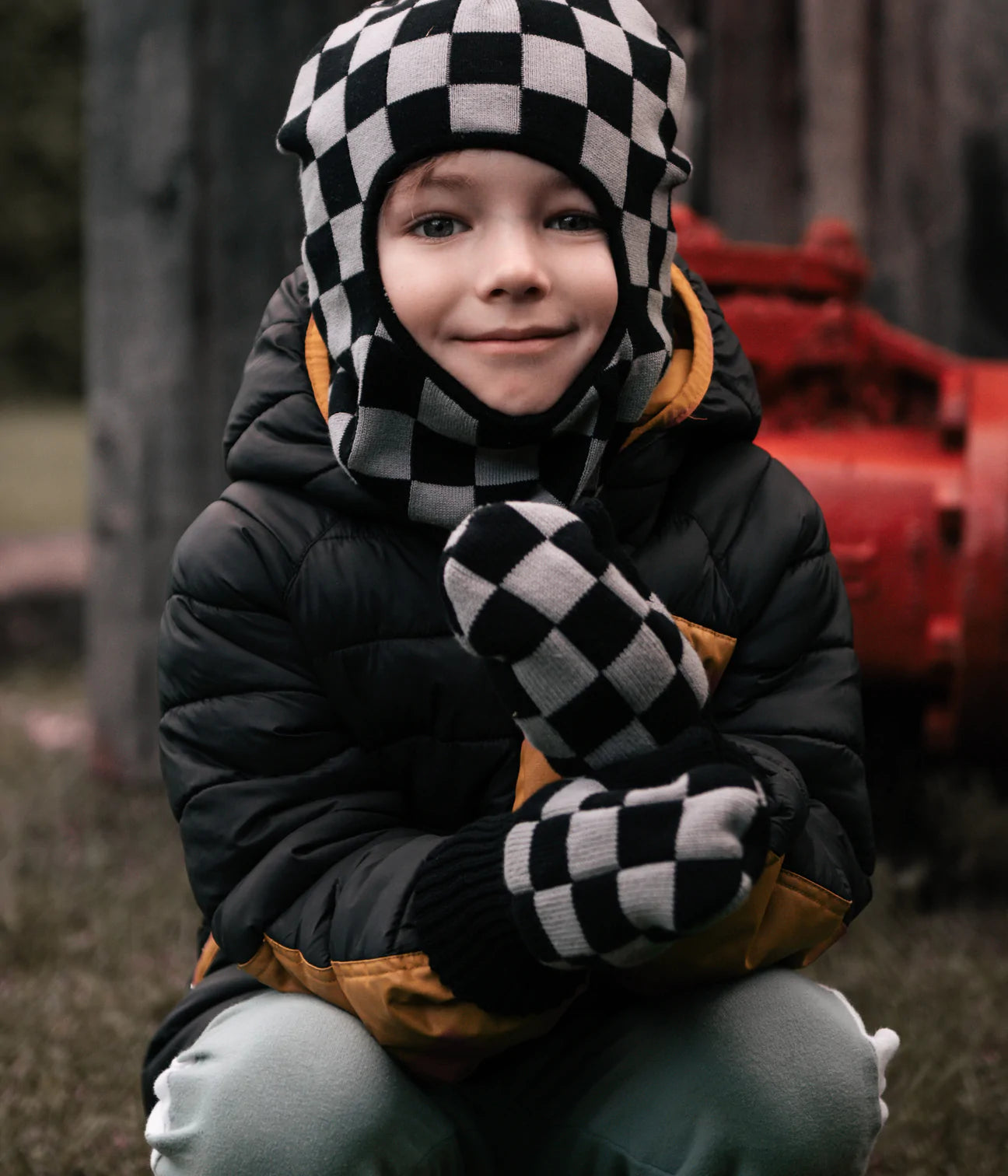 Wear them with the matching check yourself beanie. One size fits all for children from 3-8 years old