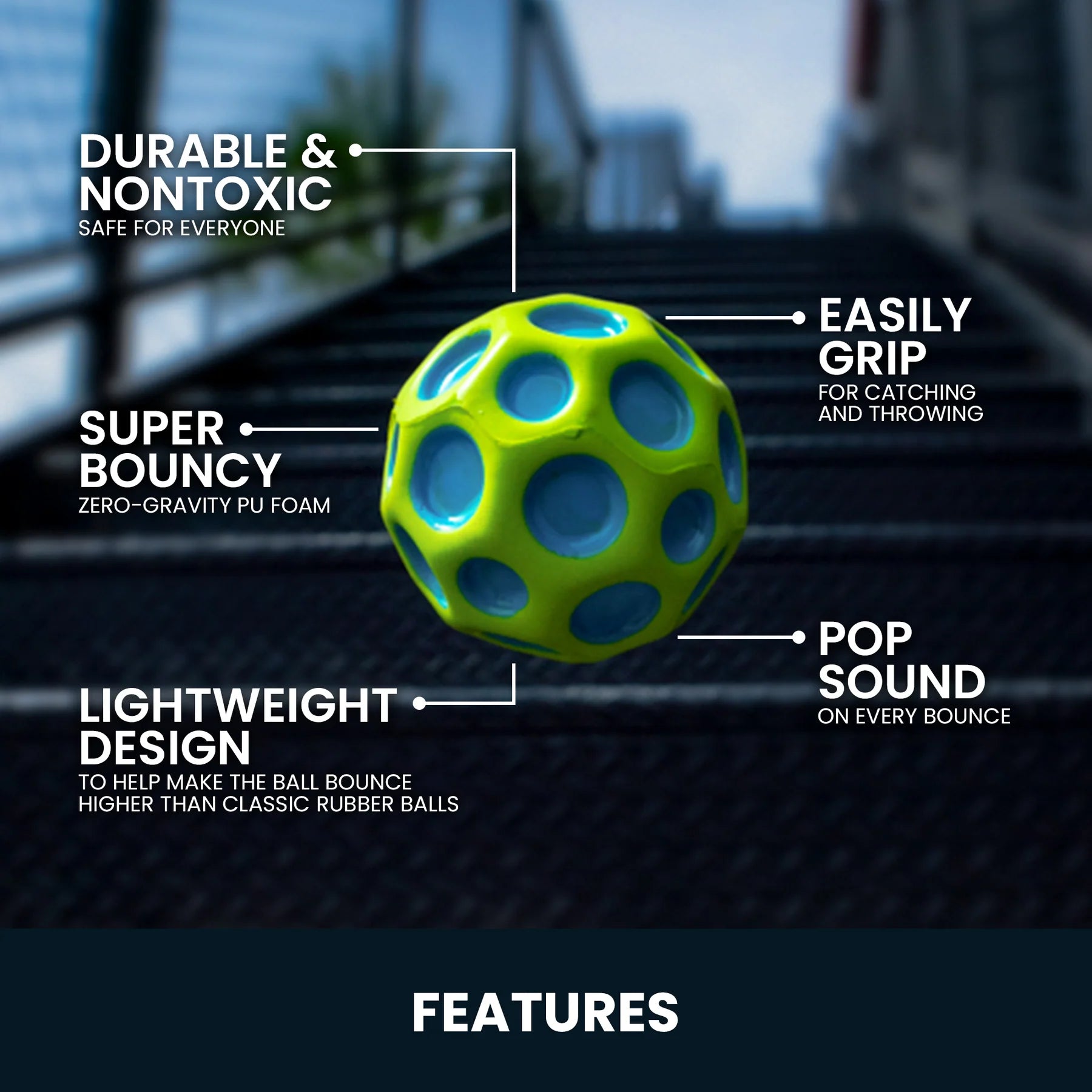 The Moon Ball is the highest bouncy ball on earth! That's one small step for us, one giant bounce for humankind. The Moon Ball's gravity-defying bounce is out of this world. It’s extremely addictive to bounce everywhere there's a hard surface.