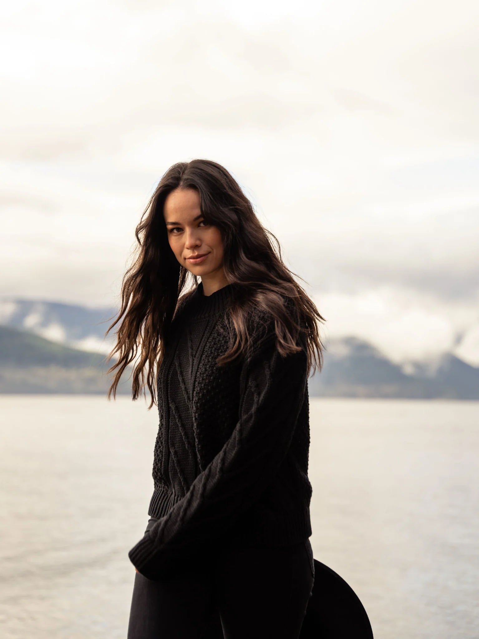 This will be the softest, most comfortable sweater in your closet! Reminiscent of your grandfather's fisherman sweater with an updated feminine look. The mock neck paired with the relaxed fit and hip length through the body are the perfect touch. Pair this with a pair of high-waisted blue denim, a mini skirt or your favourite dress for a touch of class.