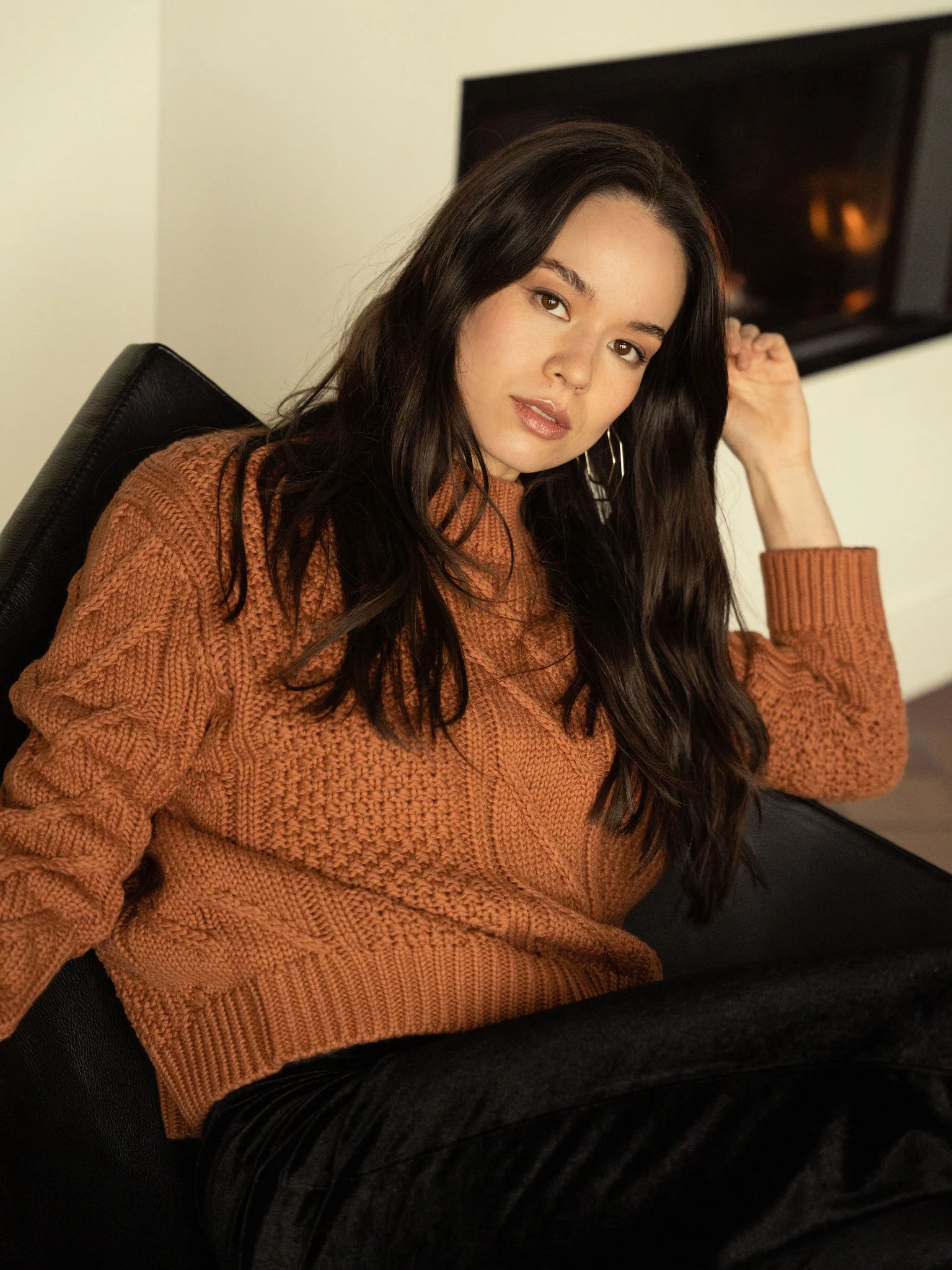 This will be the softest, most comfortable sweater in your closet! Reminiscent of your grandfather's fisherman sweater with an updated feminine look. The mock neck paired with the relaxed fit and hip length through the body are the perfect touch. Pair this with a pair of high-waisted blue denim, a mini skirt or your favourite dress for a touch of class.