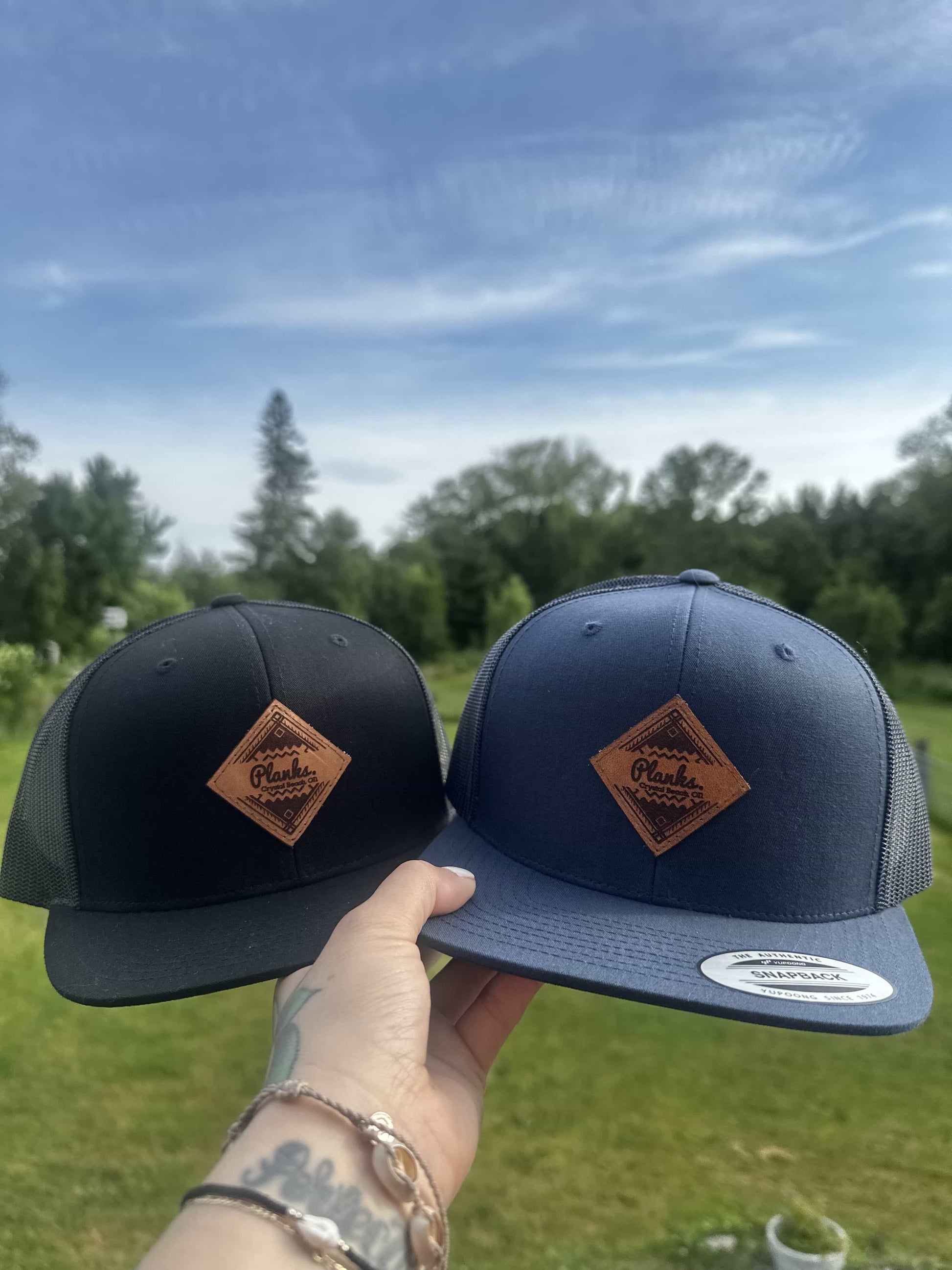 Canadian-made leather patches sewn in house onto the authentic classic snapback trucker hat.