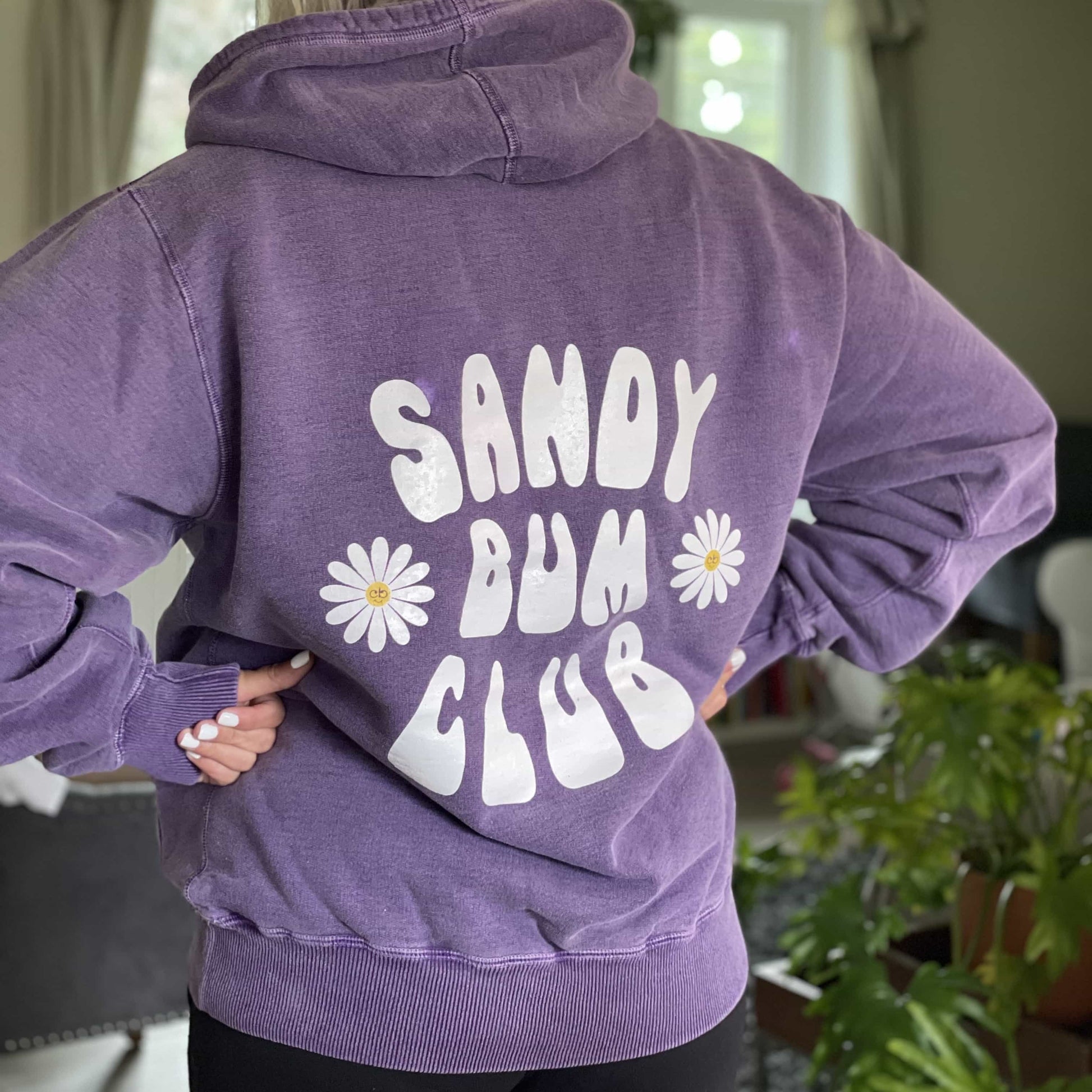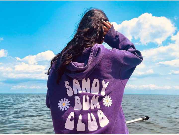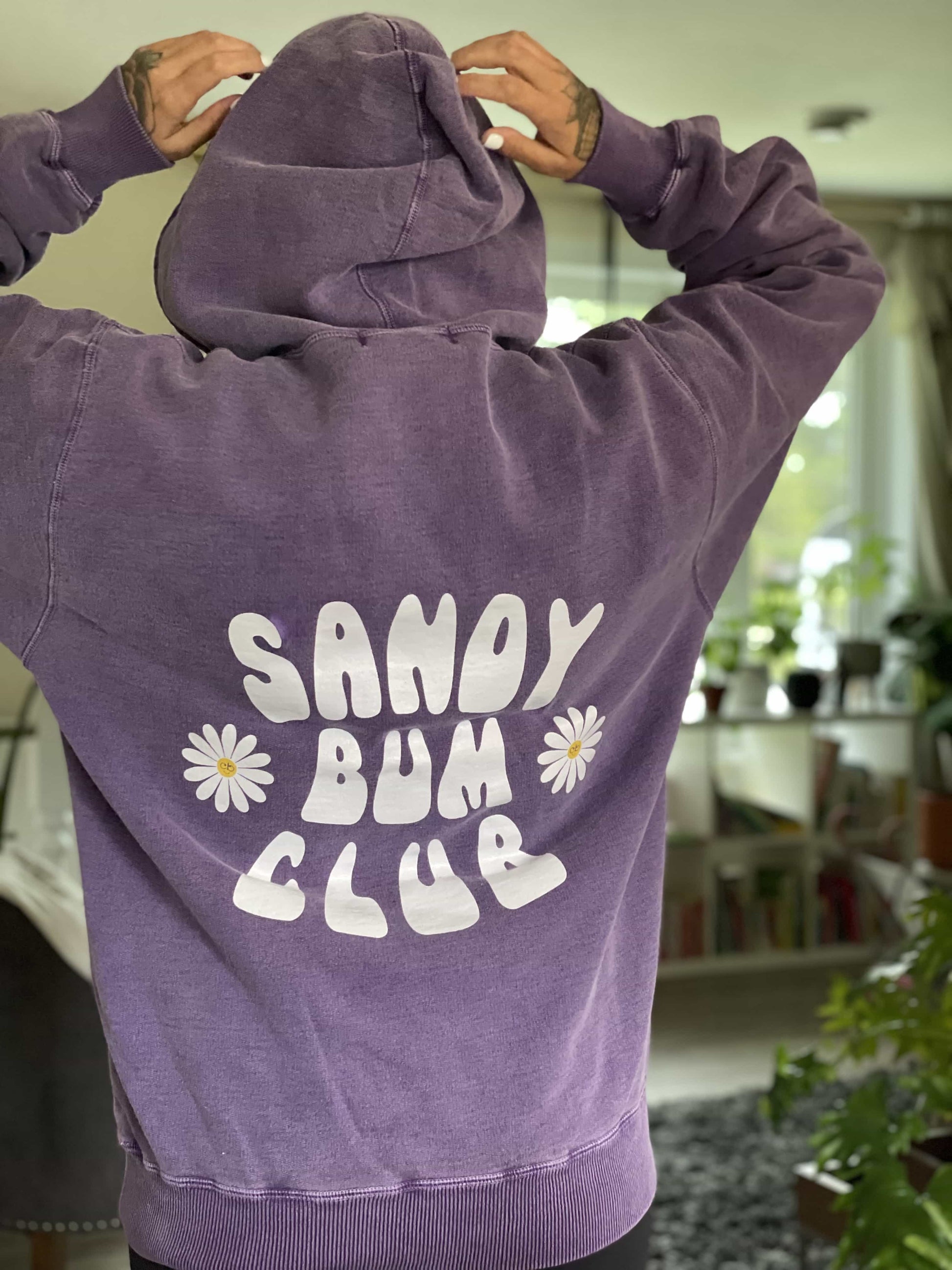 This heavyweight, cozy pullover hoody is bound to be your new favourite layering piece. Designed and crafted by talented artisans, this Deluxe Hoody boasts little details that make a big difference. Decorated with our original sandy bum club design. This forever hoodie will age as beautifully as you will.