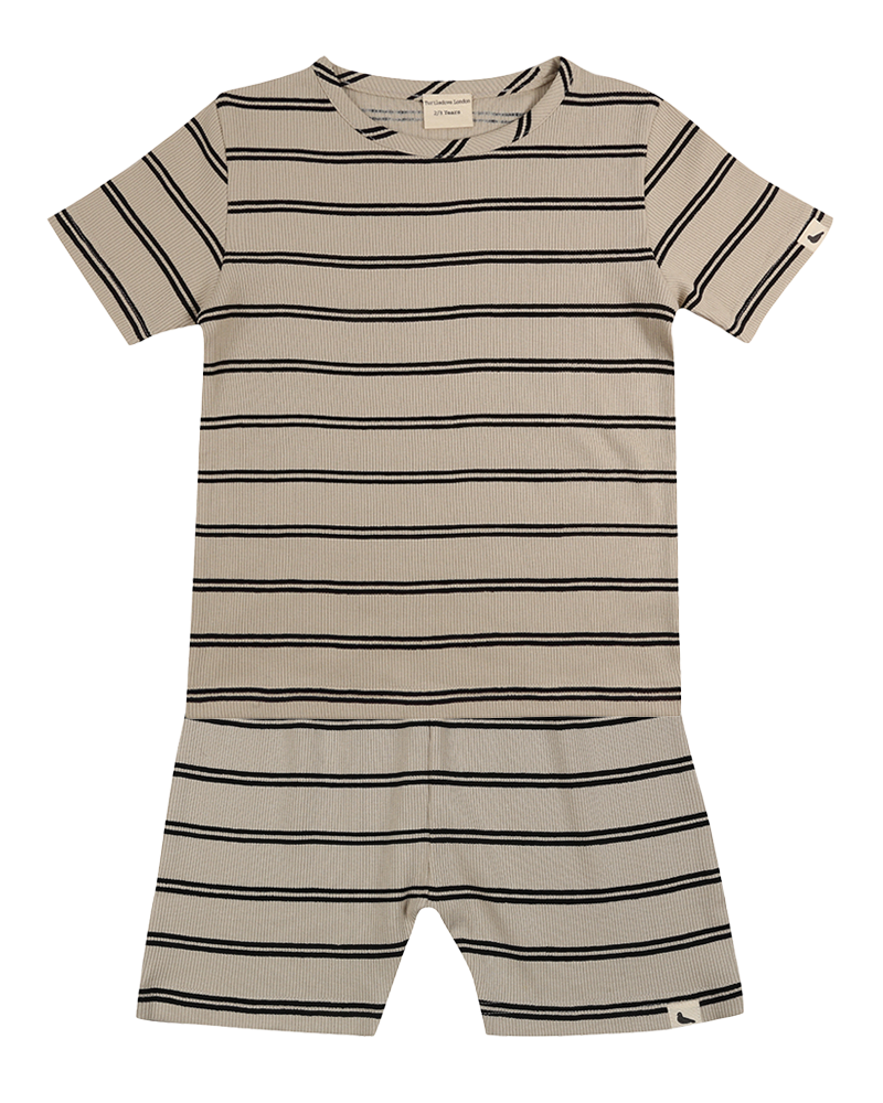 A cute summer set for both boys and girls in a soft ribbed organic cotton material. The perfect contemporary choice for your little ones to wear all year round.