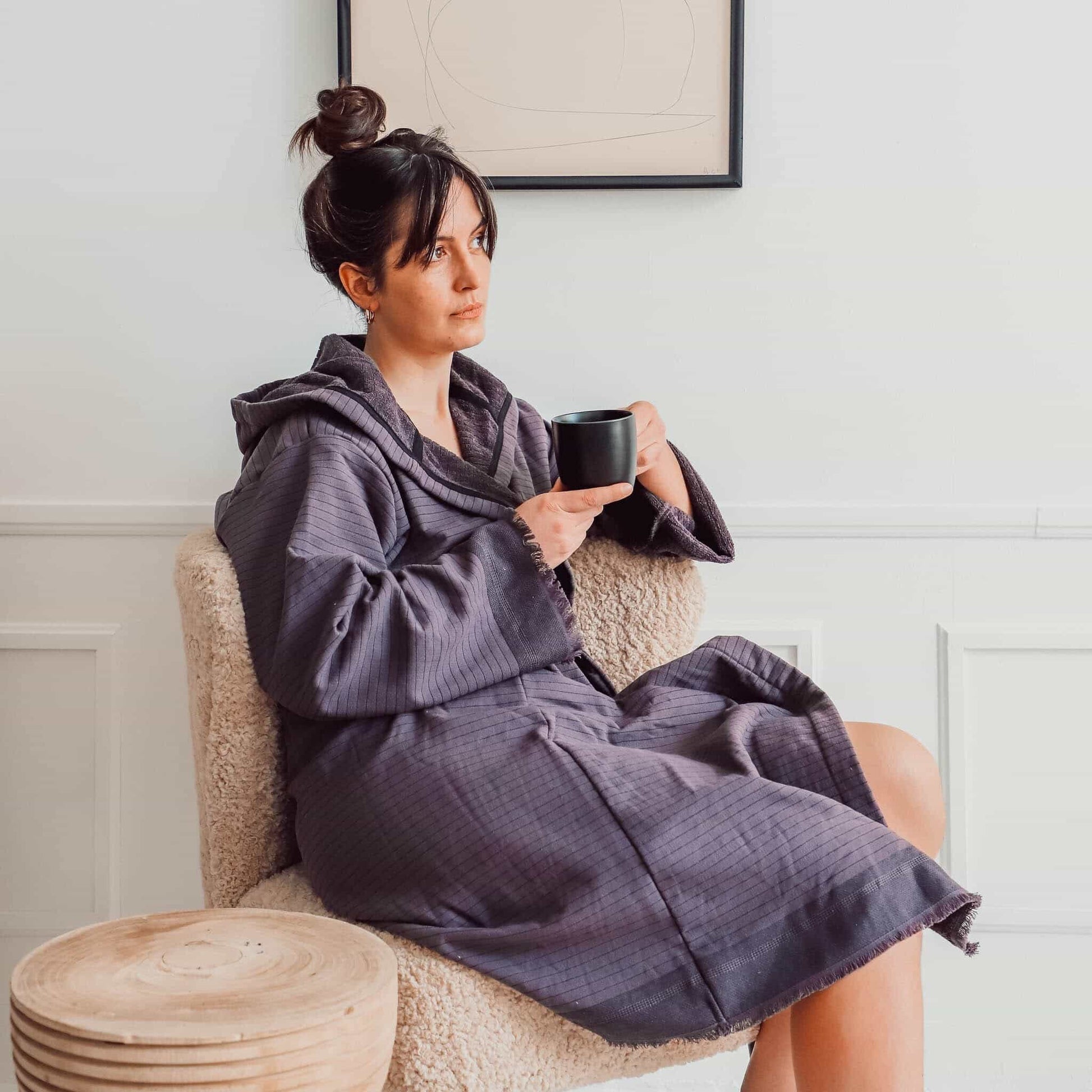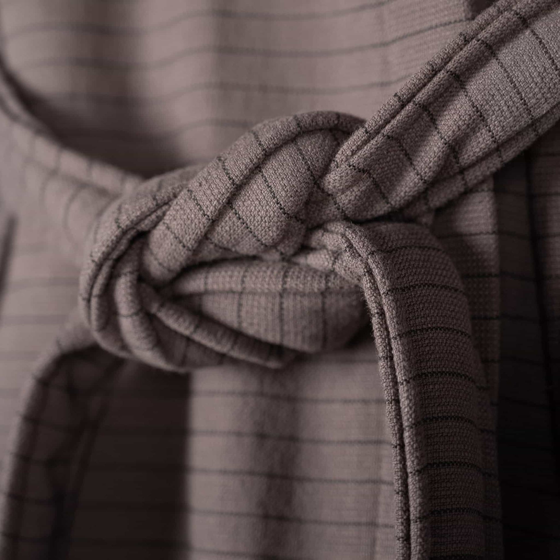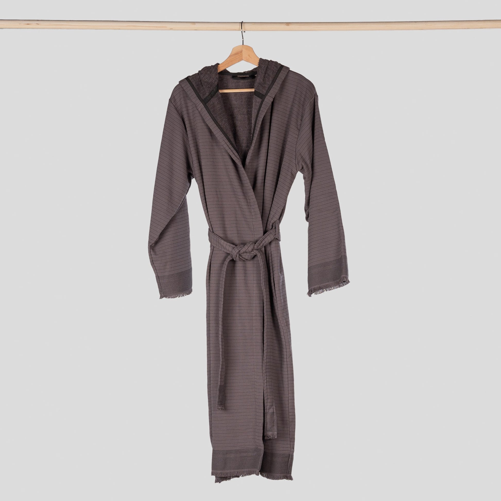 This soft terry robe features a classic and modern pattern that will suit any taste. This robe is lightweight but substantial, with an exceptionally unique hand feel, a generous hood and two deep inline pockets. A middle-weight weave, this is ideal to wear for at-home dwelling, and during both warmer and colder weather seasons.