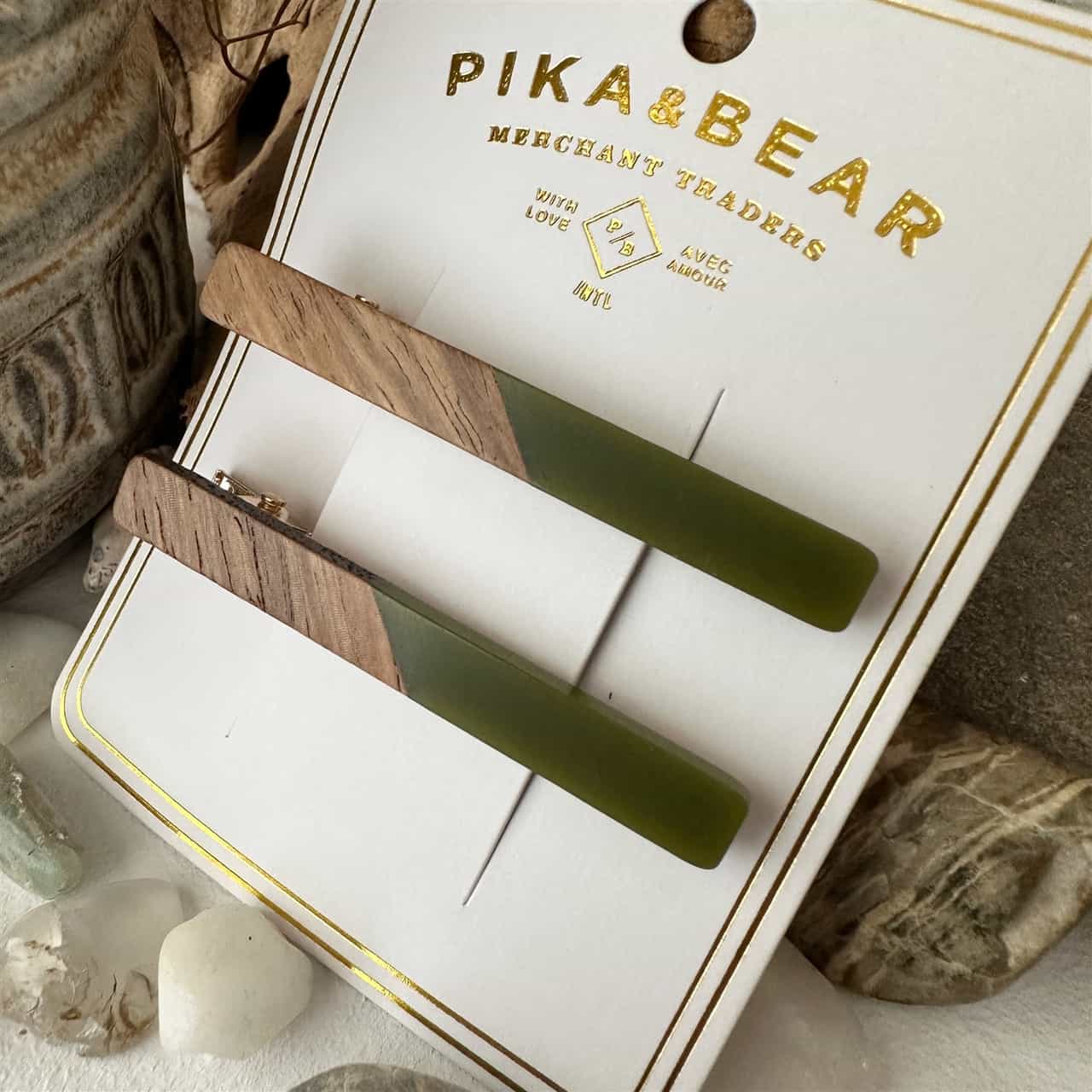 Simone - Wood & Acrylic Duckbill Hairclips in Green