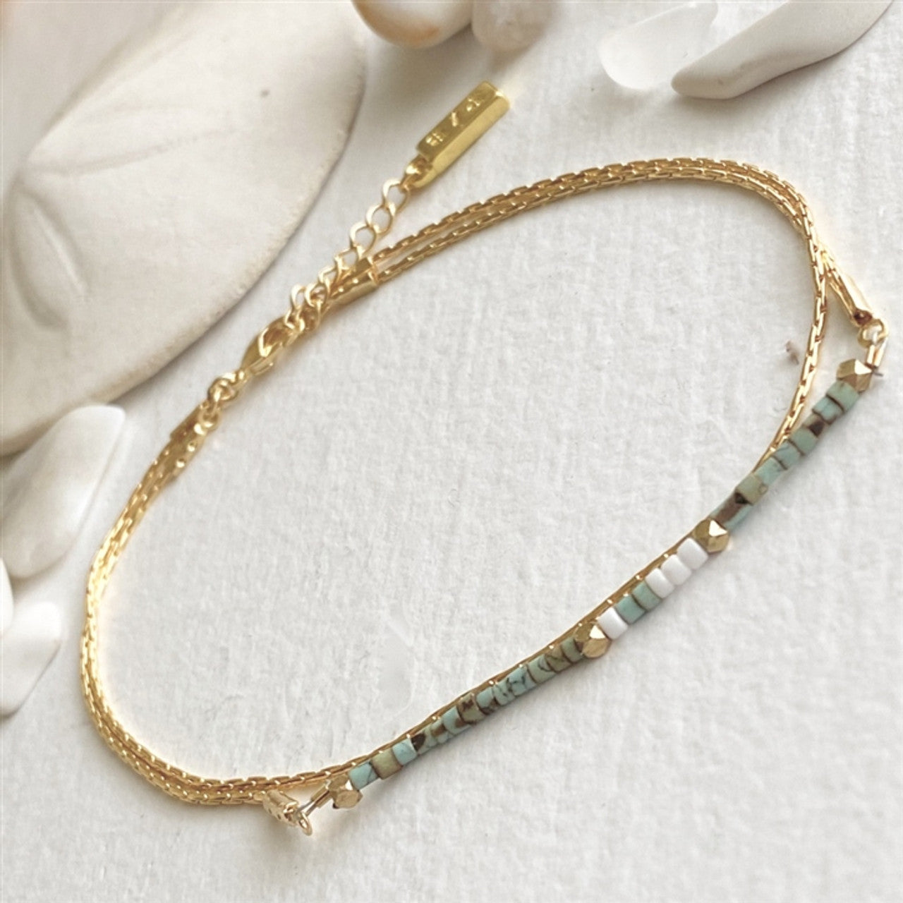 Thomson Hand Beaded Layered Anklet - Turquoise