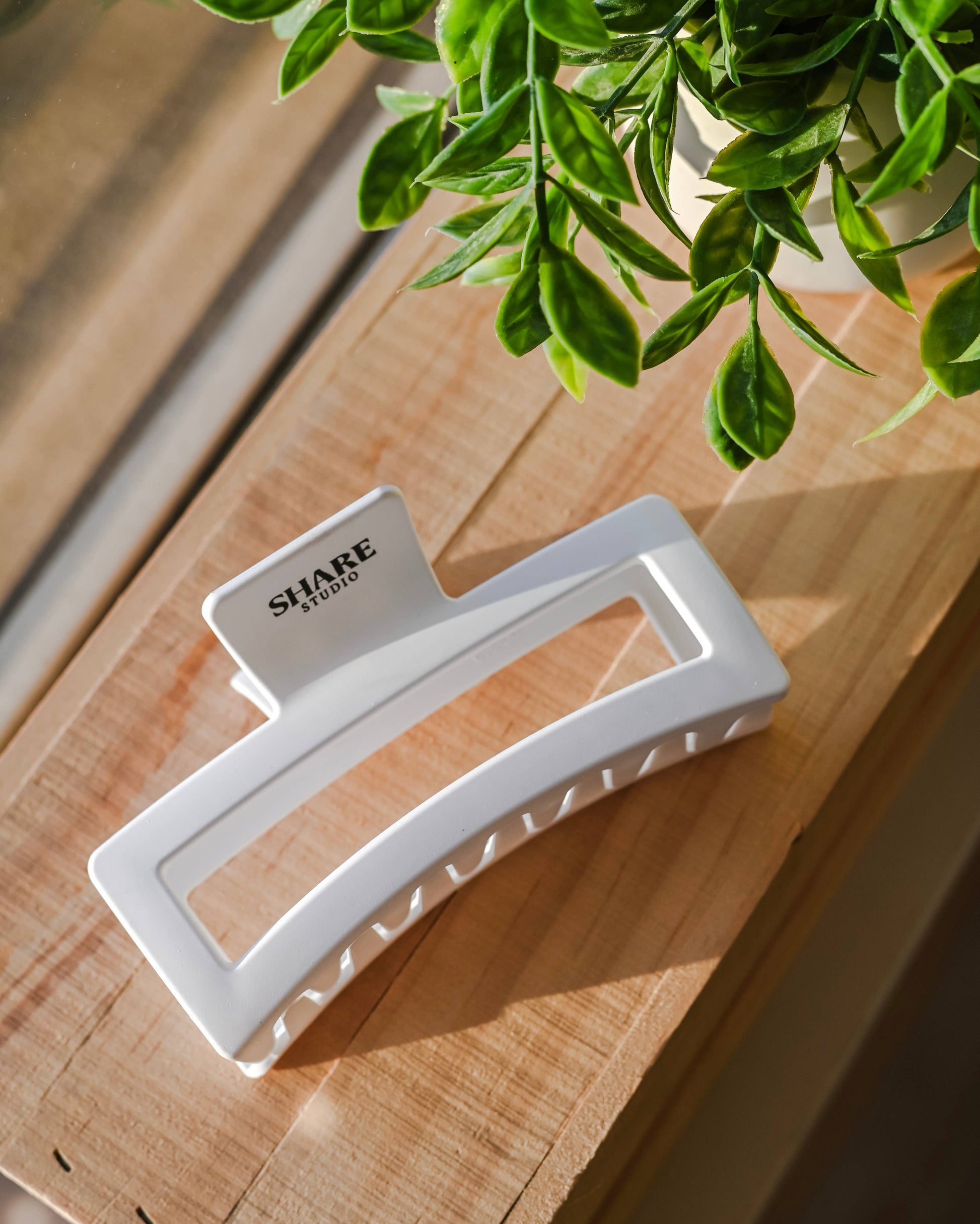 Introducing our infamous jumbo claw in the best-selling, pure white color! Measuring 5 inches long, and built with a strong spring, this clip is a must for anyone with thick hair. Add this to your collection for the perfect staple hair piece!